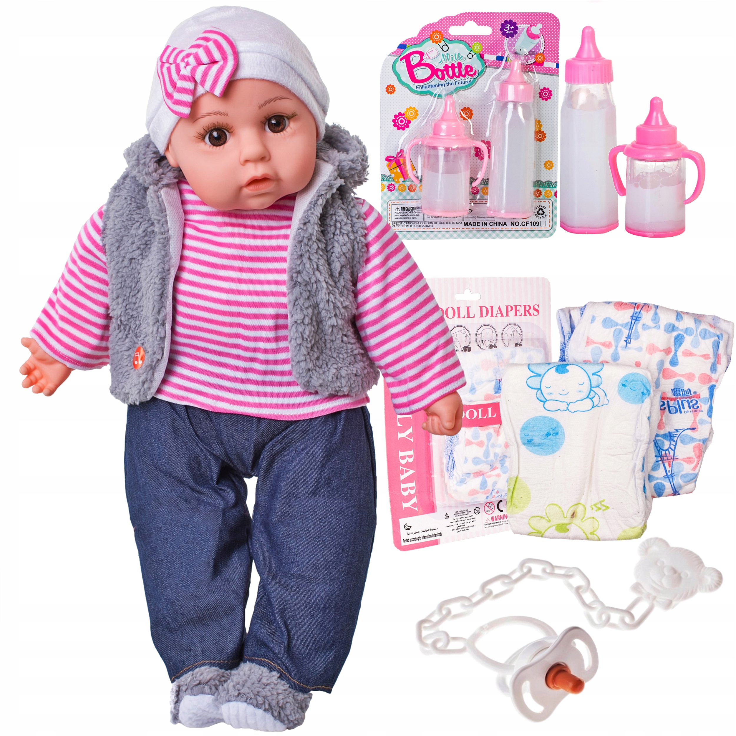 пустышка, бутылочки и подгузники