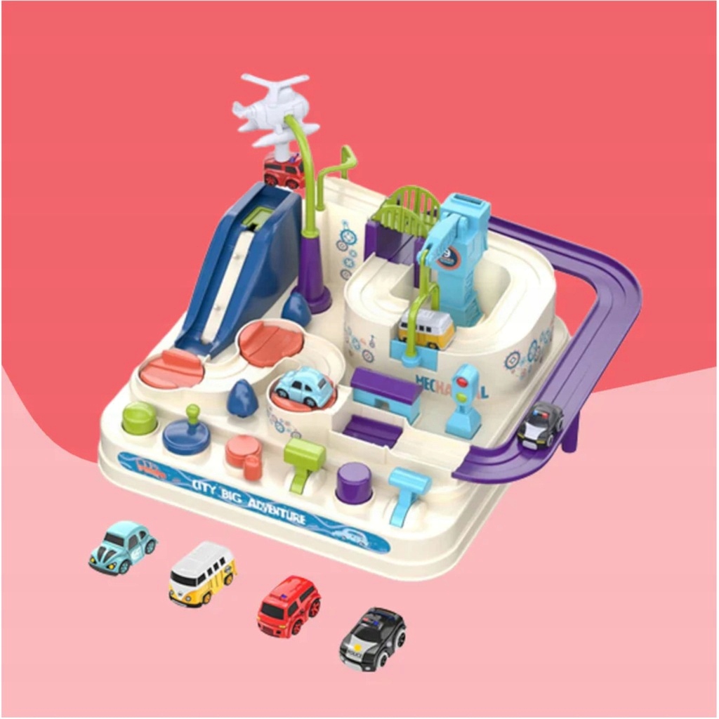 Ручная полоса препятствий — игрушка, развивающая воображение и умение логически мыслить. Ребенок должен подумать о том, как машины должны объехать его, а затем выполнить план, чтобы вернуть машину к началу трассы.