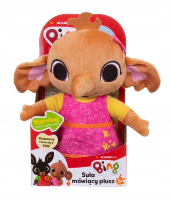 Если ваш малыш является поклонником мультипликационных сказок, а его любимый сериал о приключениях зайчика Бинга, то интерактивный талисман ему обязательно понравится с первого взгляда.Игрушка изображает Сулу > - слон, который является лучшим другом главного героя сказки. Плюшевый зверек своим внешним видом и забавными звуками порадует детей как младшего, так и старшего возраста.