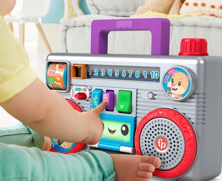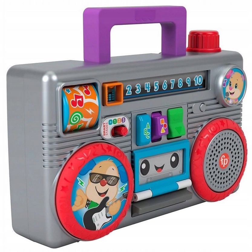 С помощью обучающих фраз и песен магнитофон помогает учить буквы, счет, цвета и многое другое, пока ваш ребенок перемещает тюнер, нажимает переключатели или открывает и закрывает отсек для кассеты.