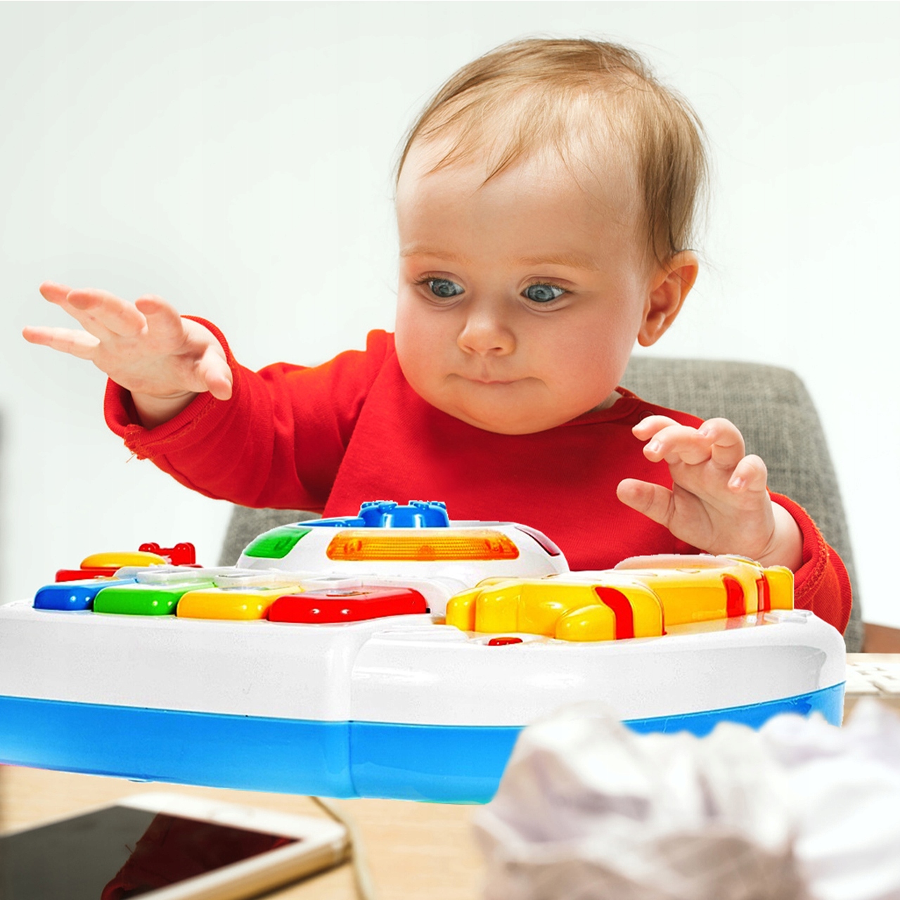 3. Развитие моторики - поворот стрелки на часах активирует различные режимы стола, клавиши затем меняют тон и играемую мелодию.