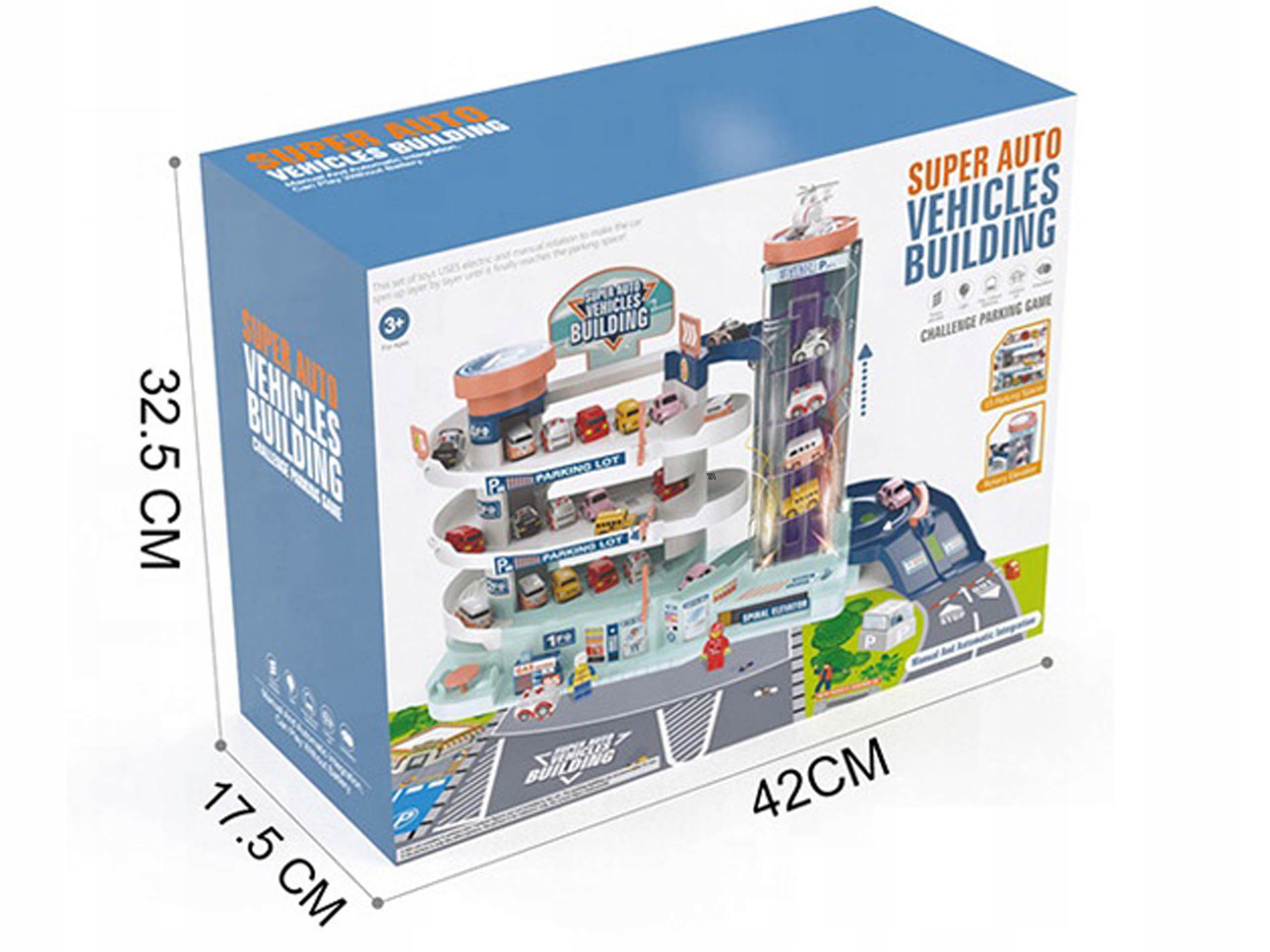 Большой многоуровневый гаражс заправочной станцией, электрическим лифтом и посадочной площадкой для вертолета – набор, который доставит радость каждому маленькому пользователю. Парковка адаптирована для «спрингеров» и содержит множество дополнительных элементов, которые значительно разнообразят веселье, таких как наклейки, выезды, проезды и фольгированный коврик с городком, который можно разместить в качестве декора под нашей парковкой.