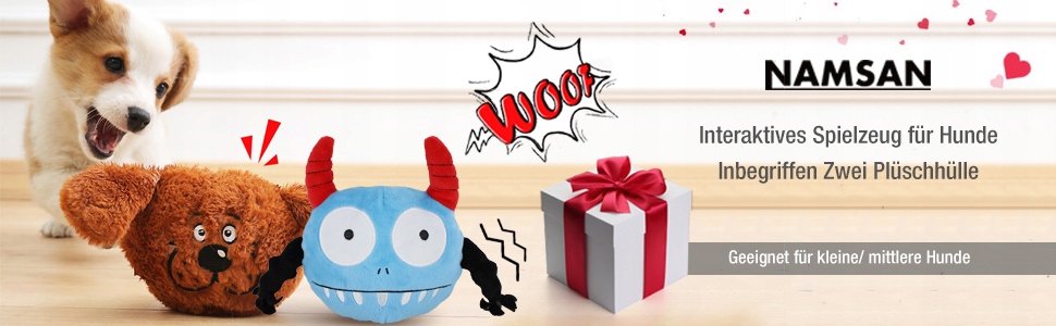 Эта интерактивная игрушка-животное состоит из двух частей с красивым плюшевым чехлом, закрывающим шар для настройки. Когда собака играет, к кнопке с шариком, встроенной в тканевый чехол, очень легко прикоснуться, а игрушка издает щенячий звук. Когда вы идете на работу, плюшевые игрушки NAMSAN станут хорошим выбором для собак. Они помогают собаке скоротать скучное время, держат собаку под контролем и не дают ей вести себя деструктивно. Еще лучше то, что в него можно играть, не нажимая переключатель.