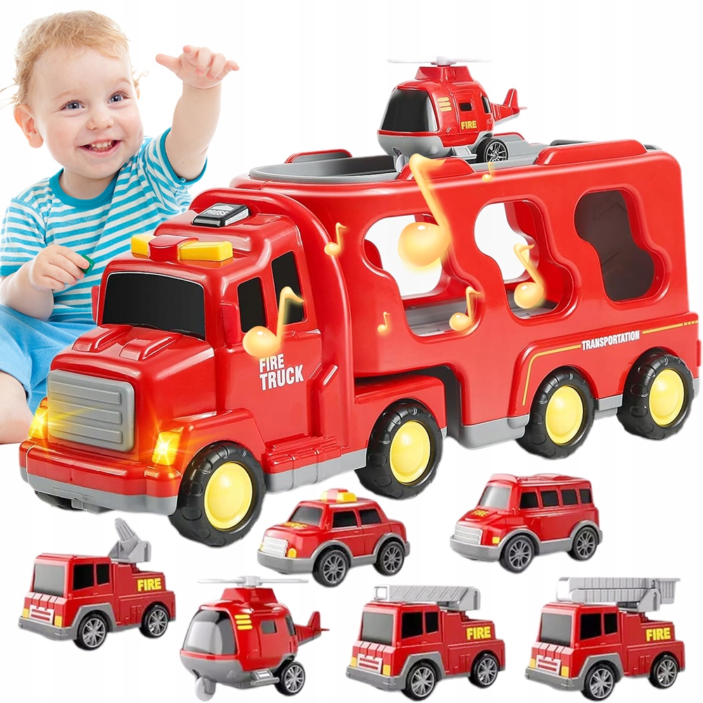 Для детей в возрасте 3-5 лет! Включает в себя: 1 большой транспортный грузовик + 6 мини -транспортных средств (пожарная машина, лестница, вертолет, суп, автомобиль и внедорожник). Все элементы подвижны - ваш ребенок будет чувствовать себя настоящим спасателем! 💪