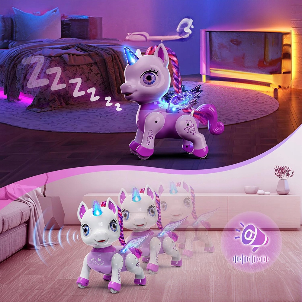 Улучшите веселье вашего ребенка благодаря роботизации, часть нашей коллекции электронных игрушек для животных. Он оборудован гребной, благодаря тому, что девушки могут расчесывать и сплетать волосы единорога. Пилот позволяет единорогу умело избегать препятствий, которые поощряют вашего ребенка к творчеству и логическому мышлению. Этот интерактивный опыт сочетает в себе творческое веселье с музыкой и робототехникой.