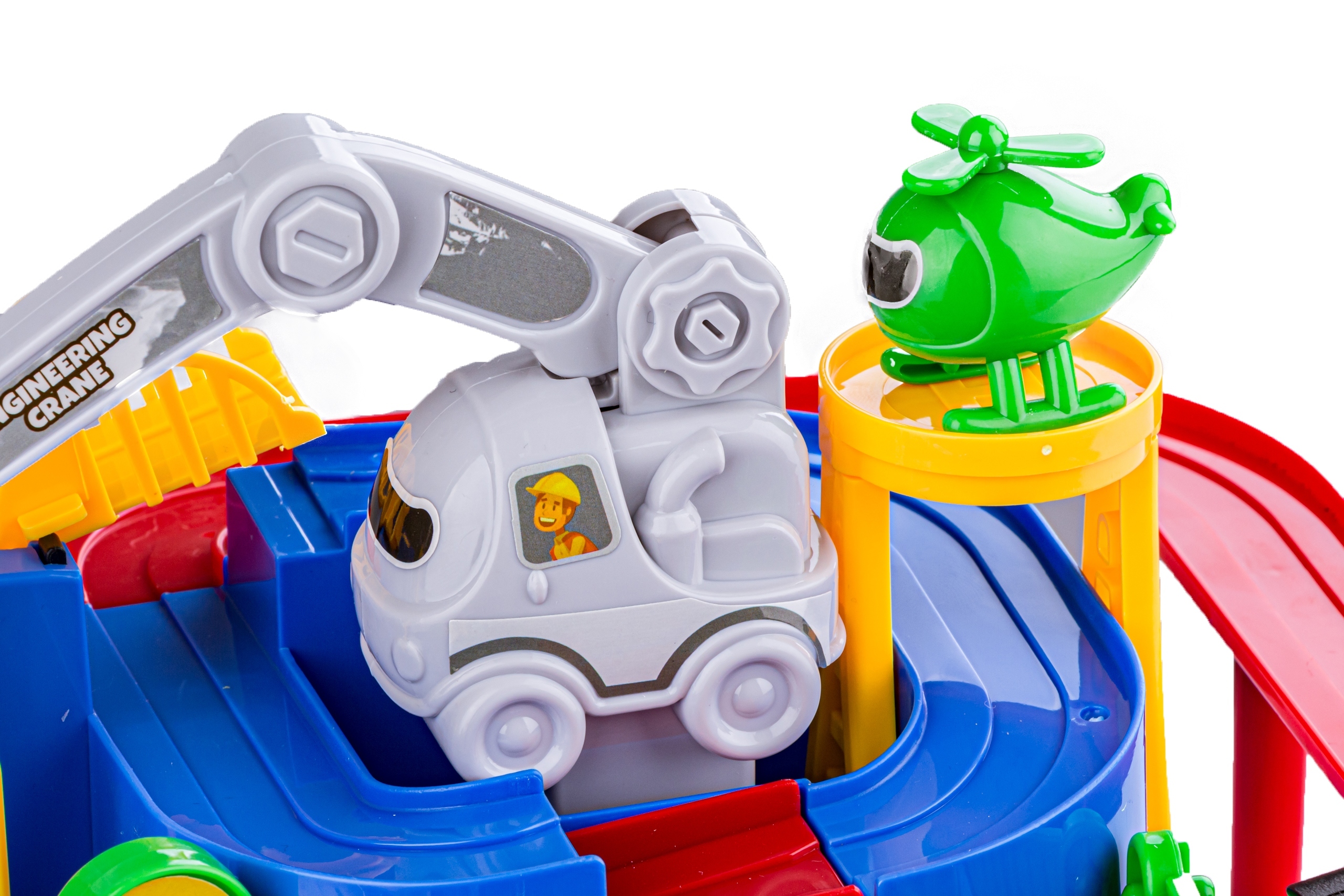 С заботой о самых маленьких, трасса и транспорт изготовлены из высококачественного материала. Яркие цвета и эстетичное исполнение эффективно стимулируют игру.