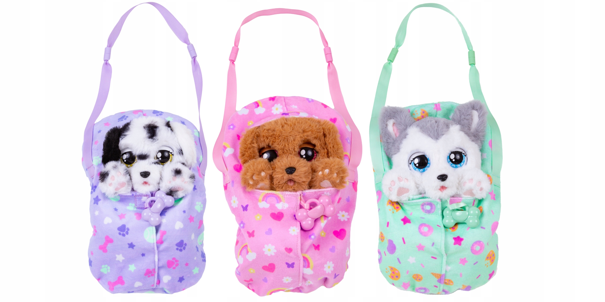 Псютуласки — это собаки в мешке, доступные в трех разных породах, что позволяет вам выбрать любимого питомца. Каждая собакаиздает до 5 различных звуков и реакций, благодаря чему они ведут себя как настоящие домашние животные.