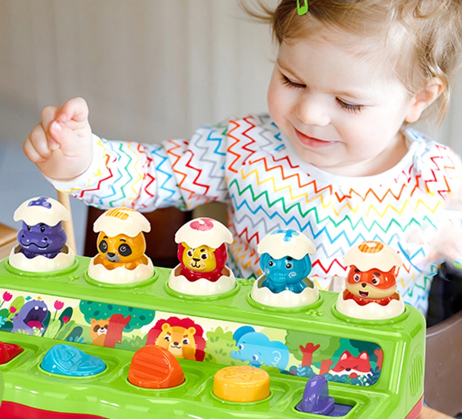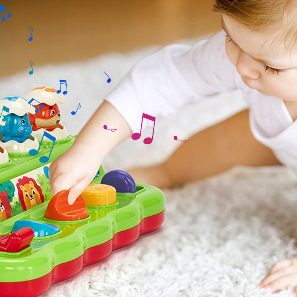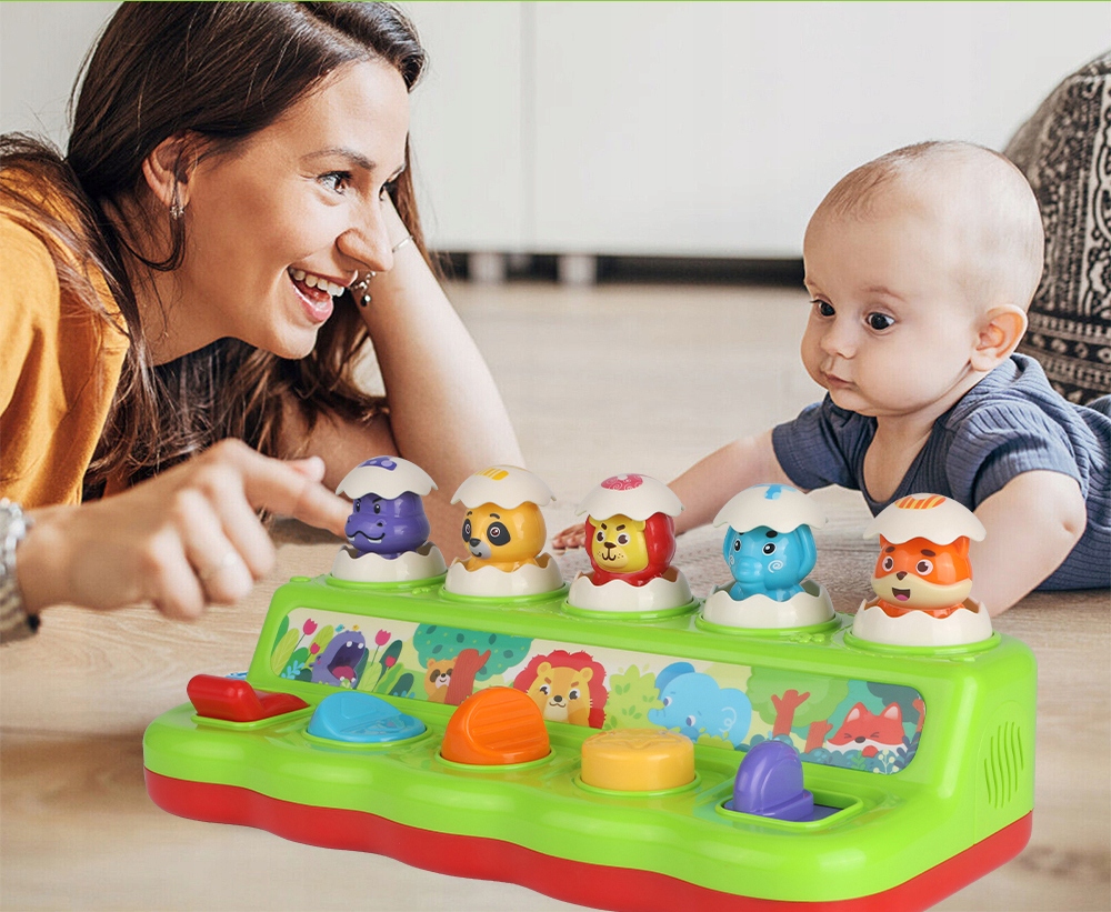Когда ваш малыш нажимает, поворачивается, поворачивается, нажимает, вытягивает разноцветные кнопки, яйца выйдут из яйца очаровательного гиппопутама, енота, льва, слона и лисиц b>.