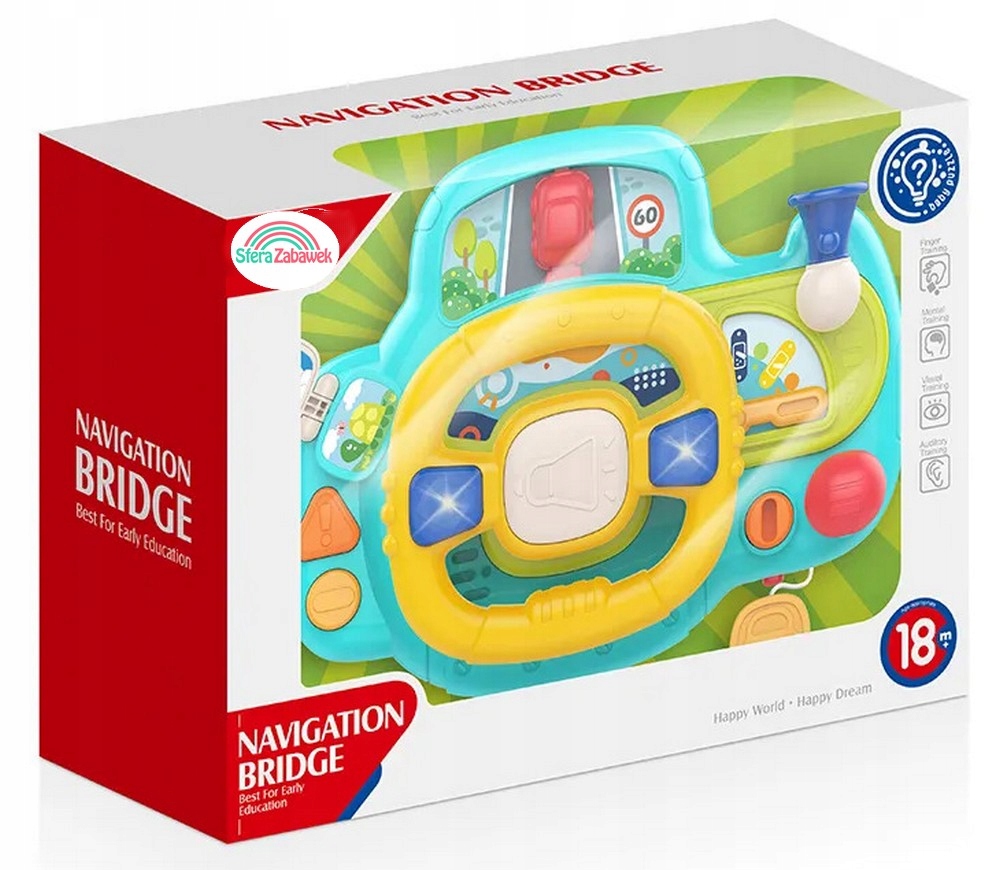 Наш музыкальный руль предлагает множество сенсорных стимулов. - красочные огни, веселые мелодии и реалистичные звуки, такие как гудок, звук запуска двигателя или сигналы поворота.