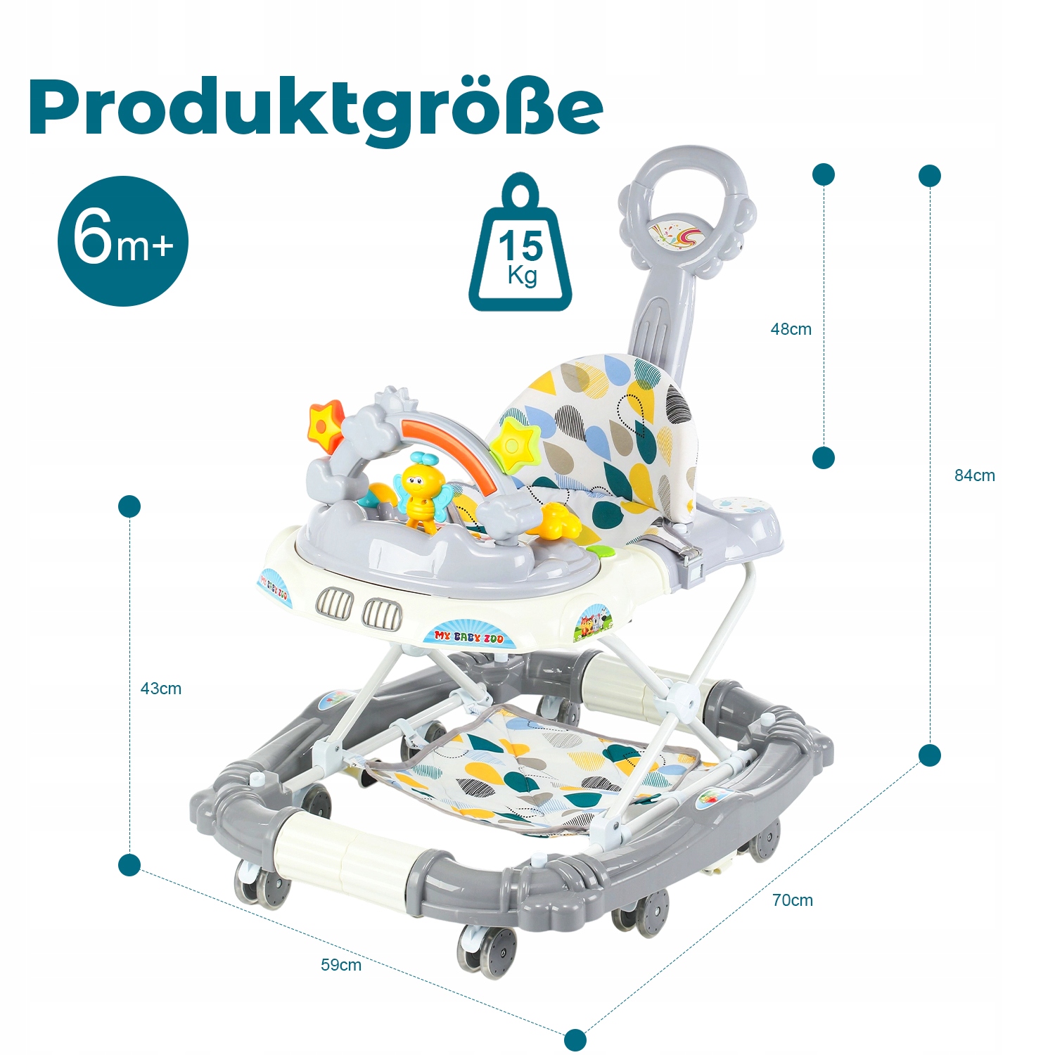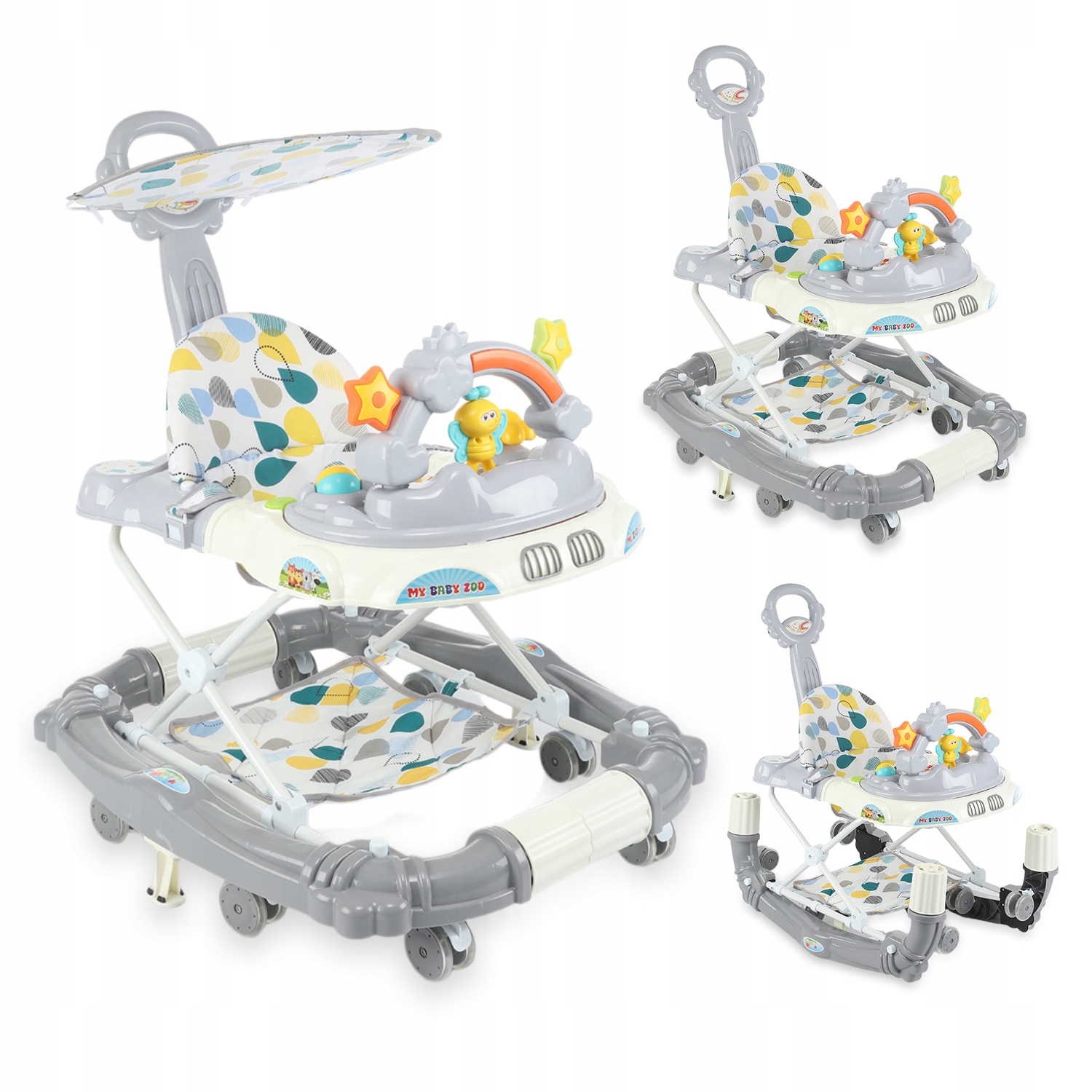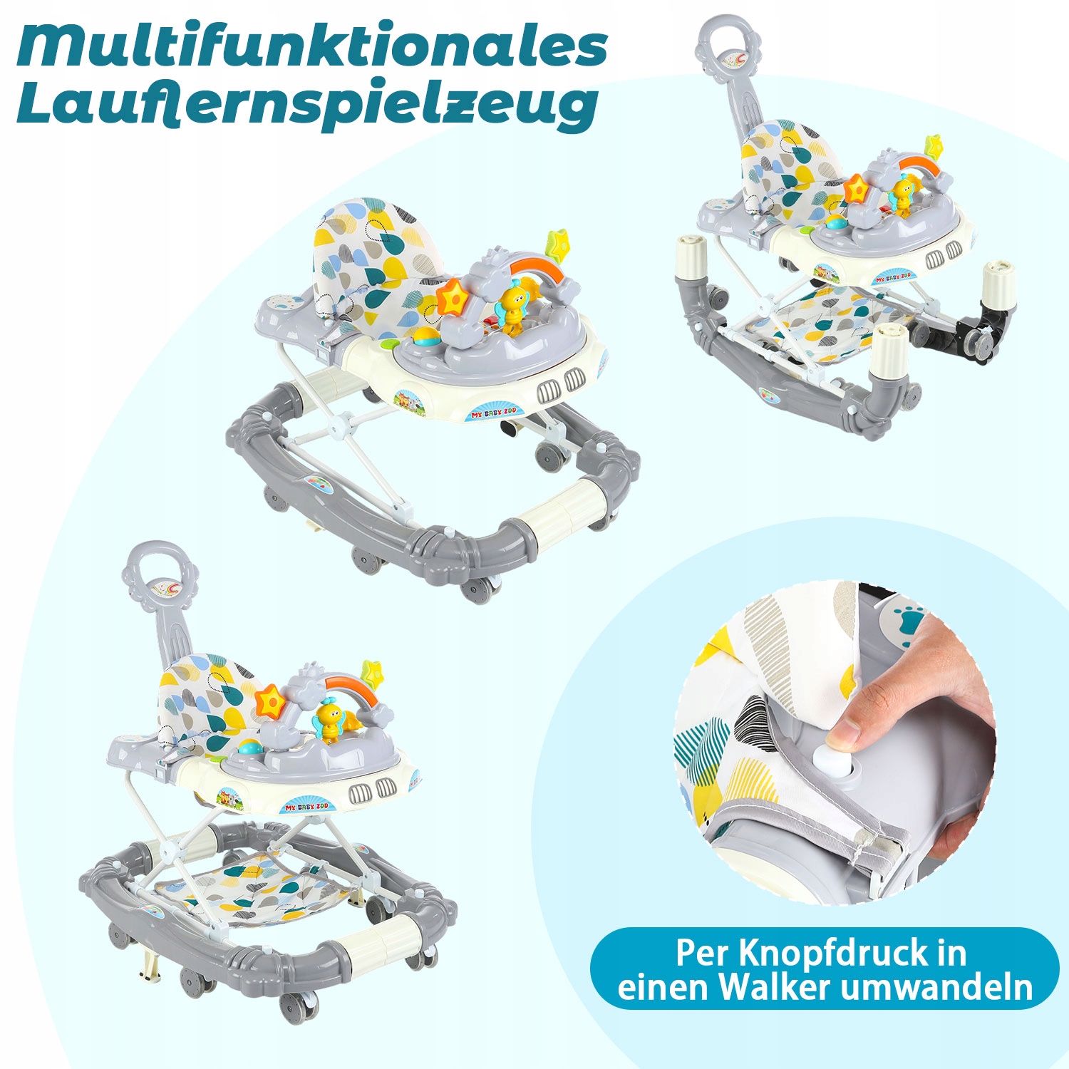 Универсальная трехсторонняя трансформация — эти практичные ходунки адаптируются к различным этапам роста вашего ребенка — функция ходунков для первых шагов, функция коляски для самостоятельной ходьбы и игрушечная коляска для игр на ходу.