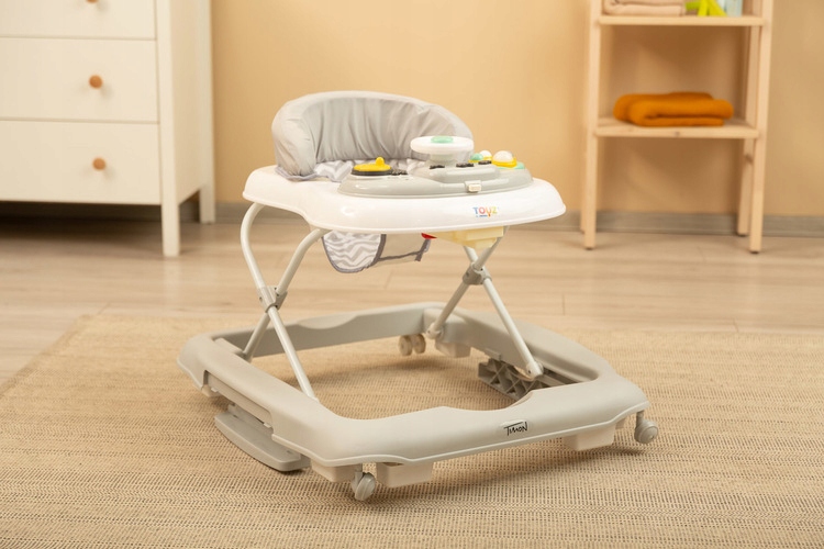 Тимон – универсальные ходунки с функцией покачивания. Его отличают интересные цвета и удобство использования. Благодаря уникальному дизайну его можно быстро превратить в кресло-качалку, легко отрегулировать высоту сиденья и сложить после игры. Ходунки оснащены звуковой панелью на батарейках и ручными игрушками, гарантирующими радостное развлечение.