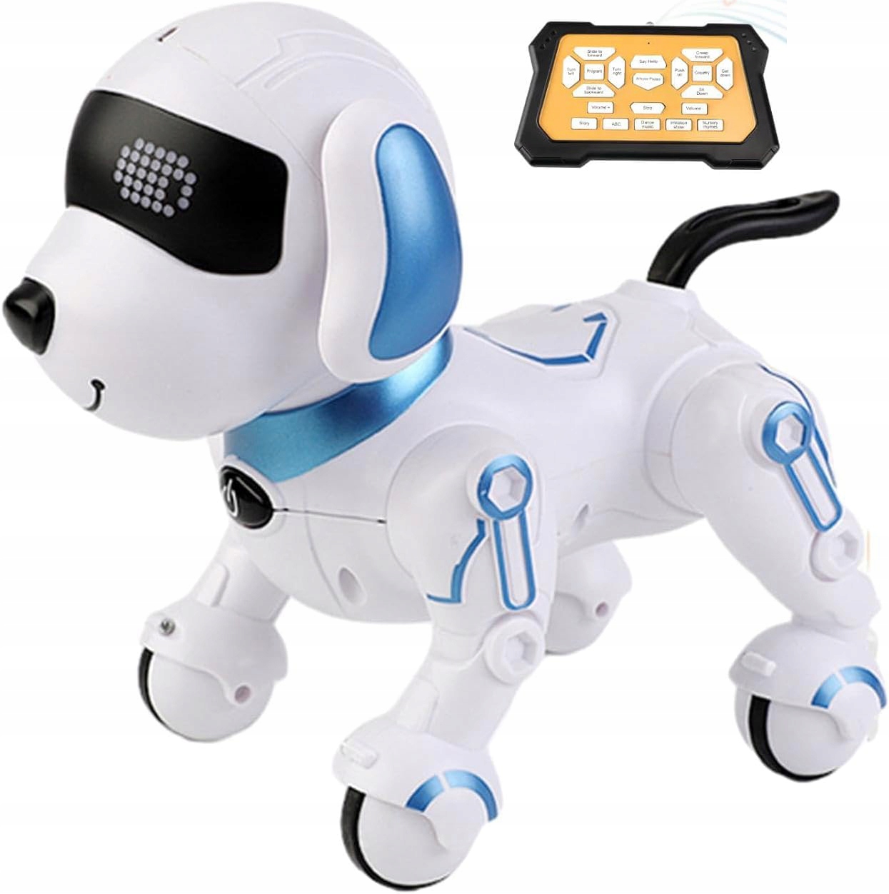 Робособака выучила шесть историй; для каждого английского слова он может выполнять соответствующие действия с 26 буквами; имеет шесть танцевальных песен и шесть детских стишков.