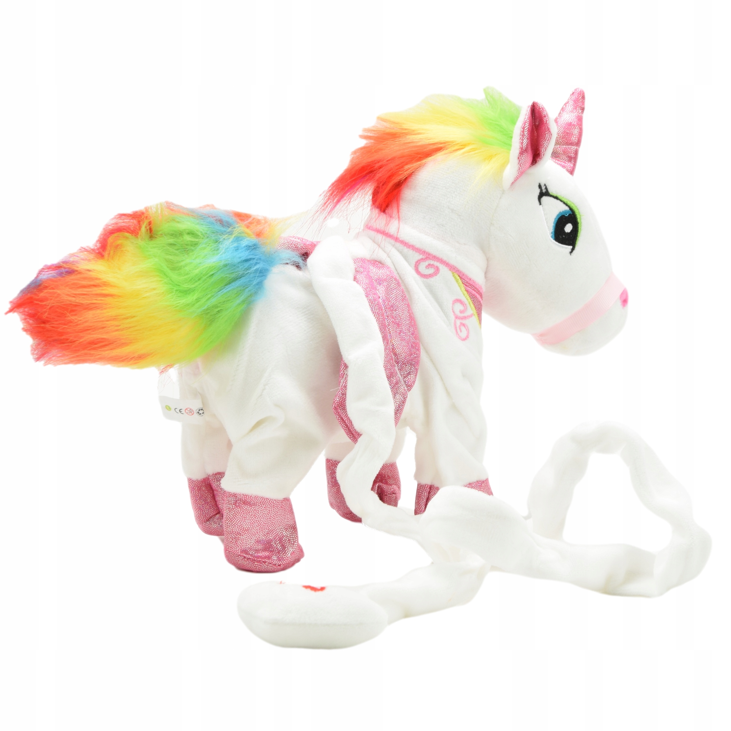 ☑️ Включение игрушки заключается в переключении Кнопка включения спрятана под материалом, где установлена батарея. Возьмите шнурок в руку и включите кнопку - нажмите ее еще раз, чтобы выключить единорога