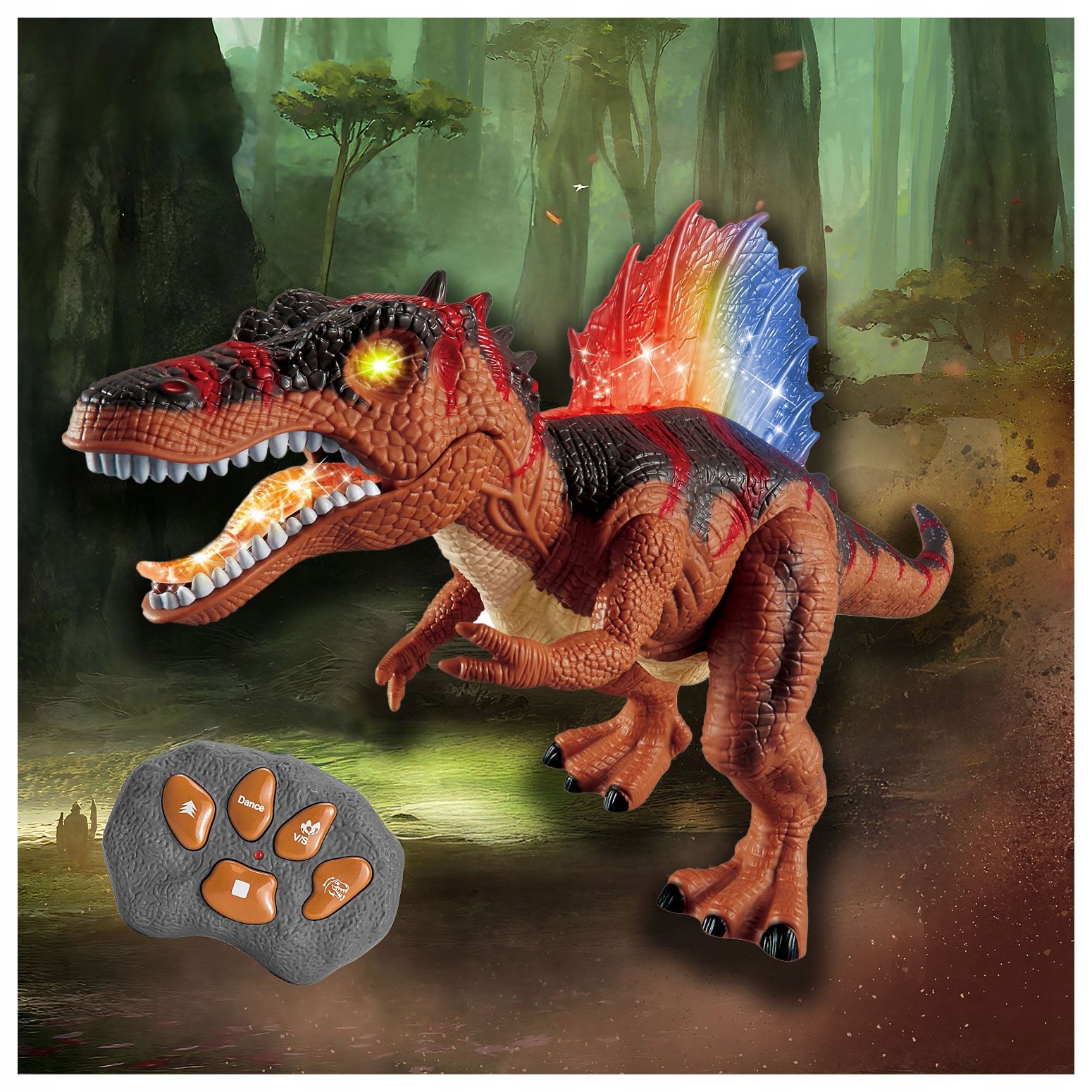 У динозавра есть режим боя. Просто поместите его рядом со второй моделью, поддерживающей эту функцию, и нажмите кнопку на пульте дистанционного управления. Полюбуйтесь битвой динозавров! Режим можно активировать одновременно на трех спинозаврах!