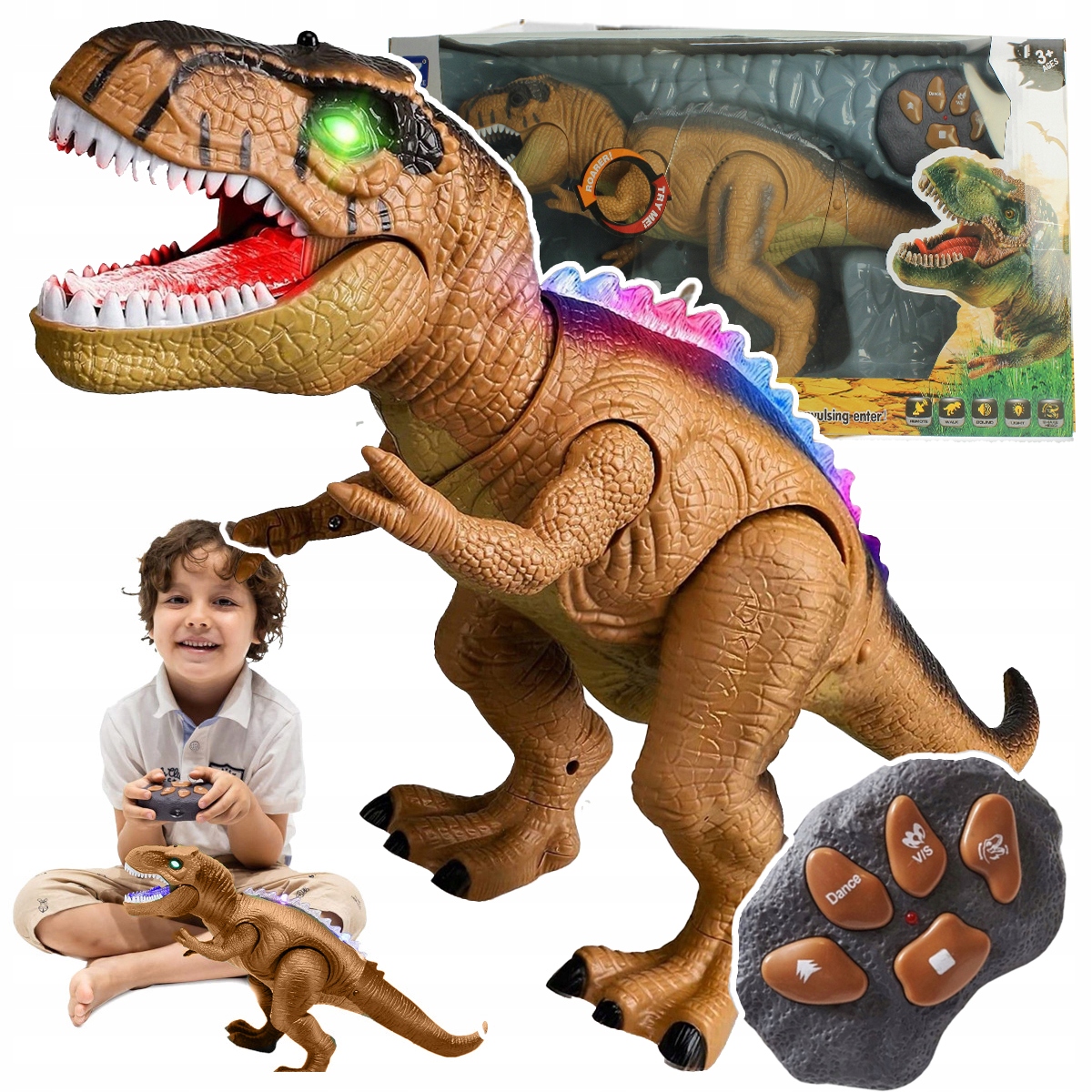 ИНТЕРАКТИВНЫЙ СВЕТОДИОДНЫЙ РОБОТ ДИНОЗАВРА С ДИСТАНЦИОННЫМ УПРАВЛЕНИЕМ Рычит, Ходит Светом
