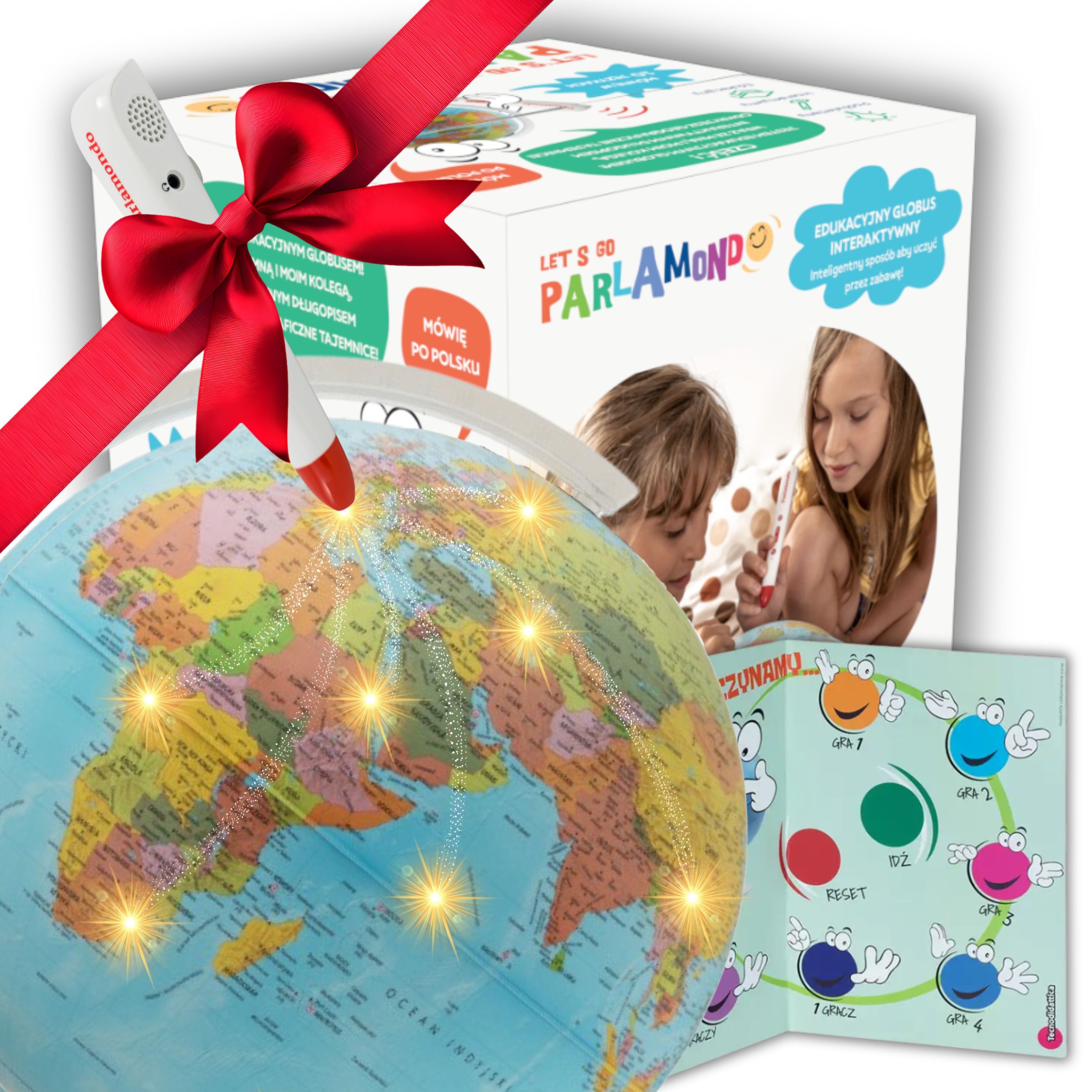 Благодаря Parlamondo вы подарите своему ребенку незабываемое кругосветное путешествие — земной шар предоставит информацию о столицах и языках данной страны, а также о самых важных фактах на целых семи языках — польском, английском, французском, испанском, португальском, немецком, итальянском, голландском, шведском и греческом! С раннего возраста ваш ребенок углубляет свои лингвистические знания и пробуждает любопытство к миру.