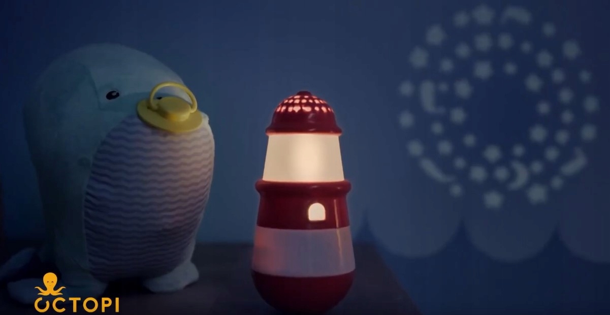 Когда вы обнимаете игрушку, маяк начинает играть колыбельные и светиться.