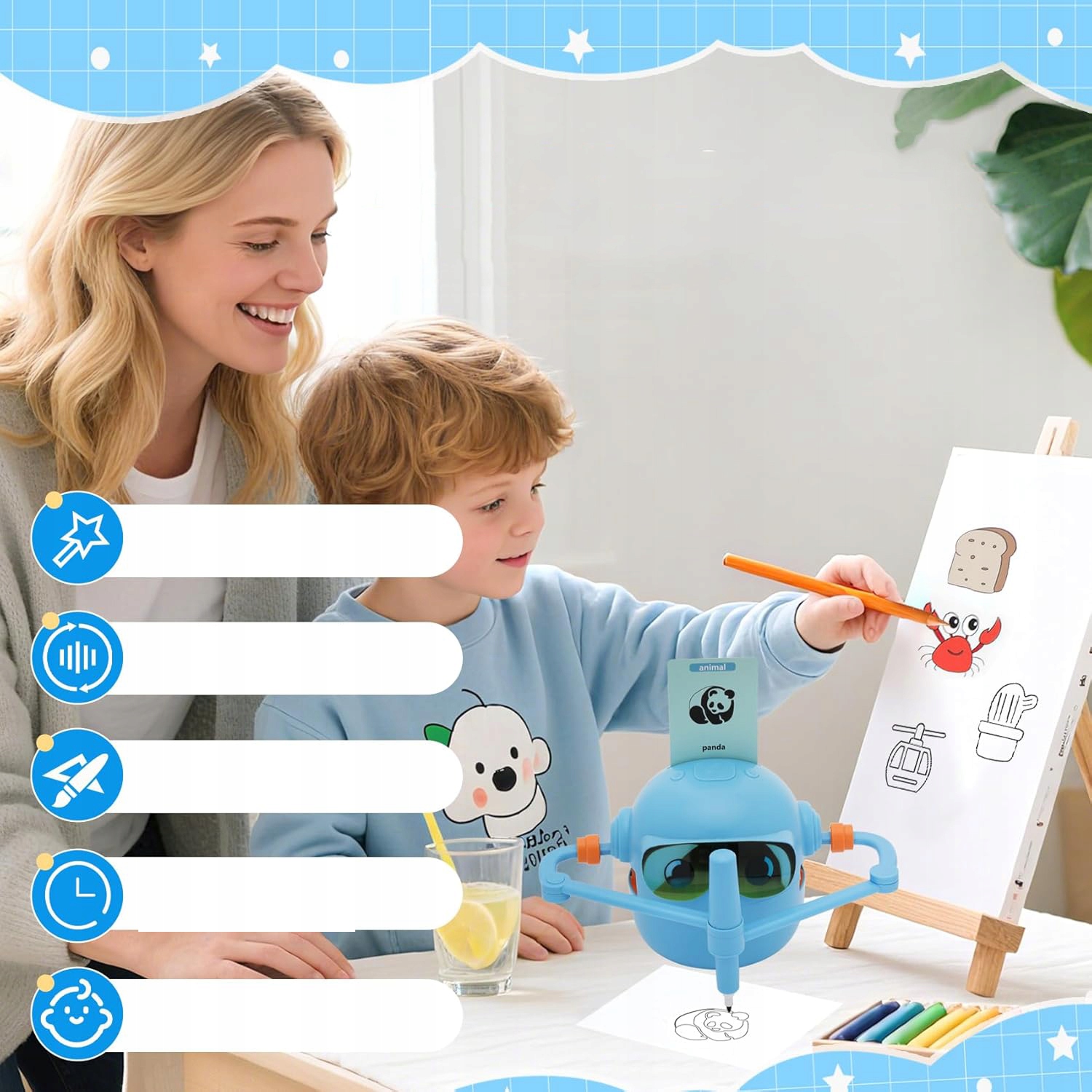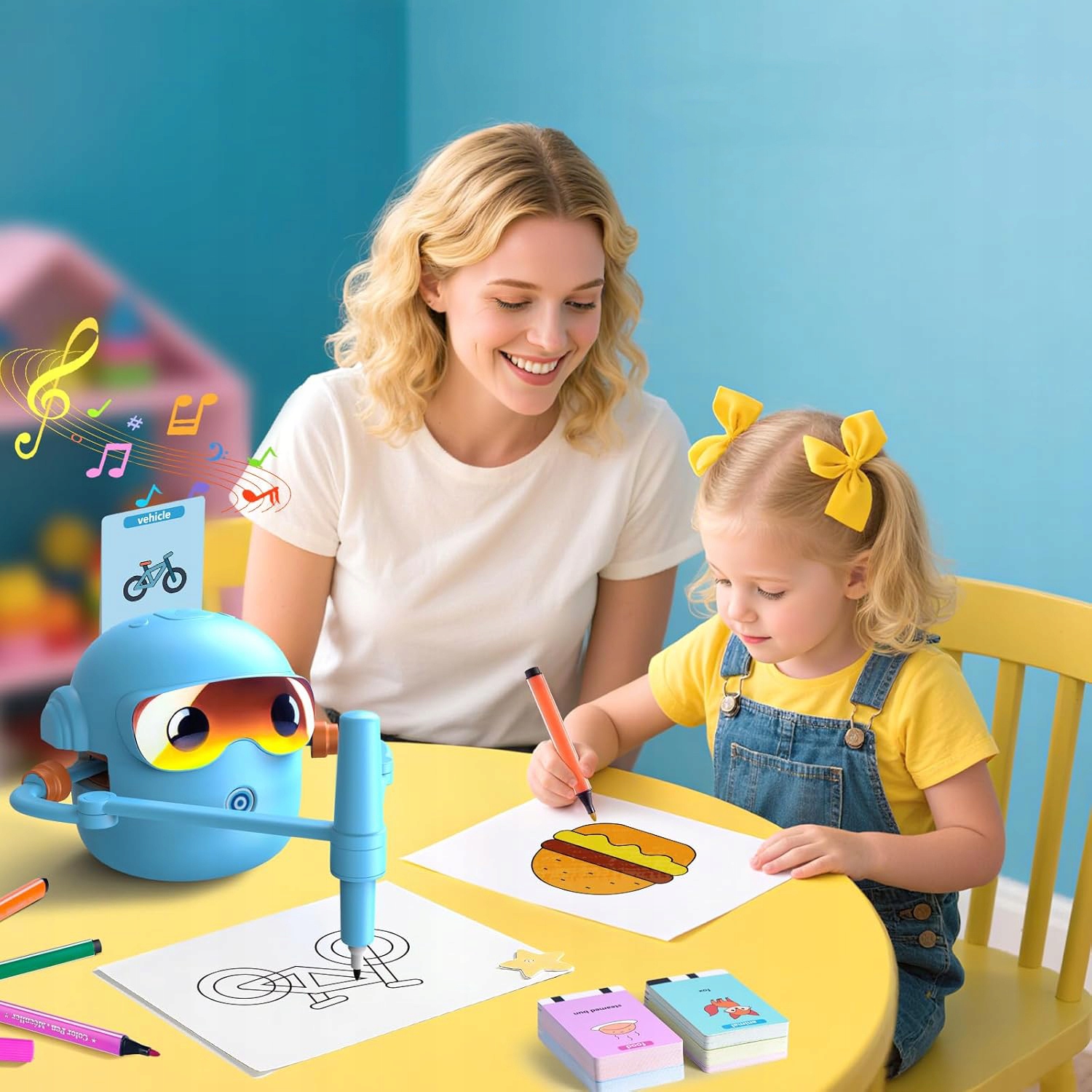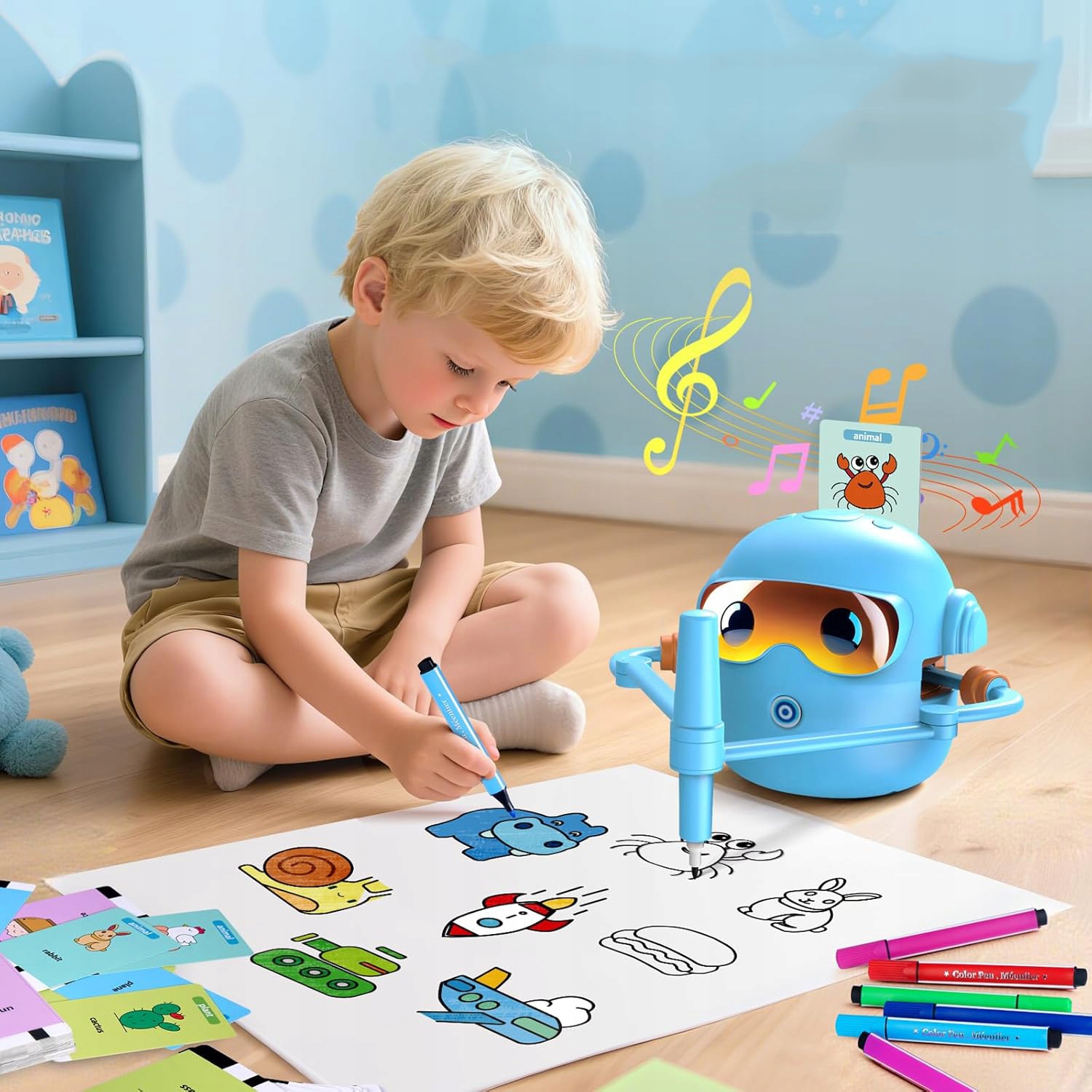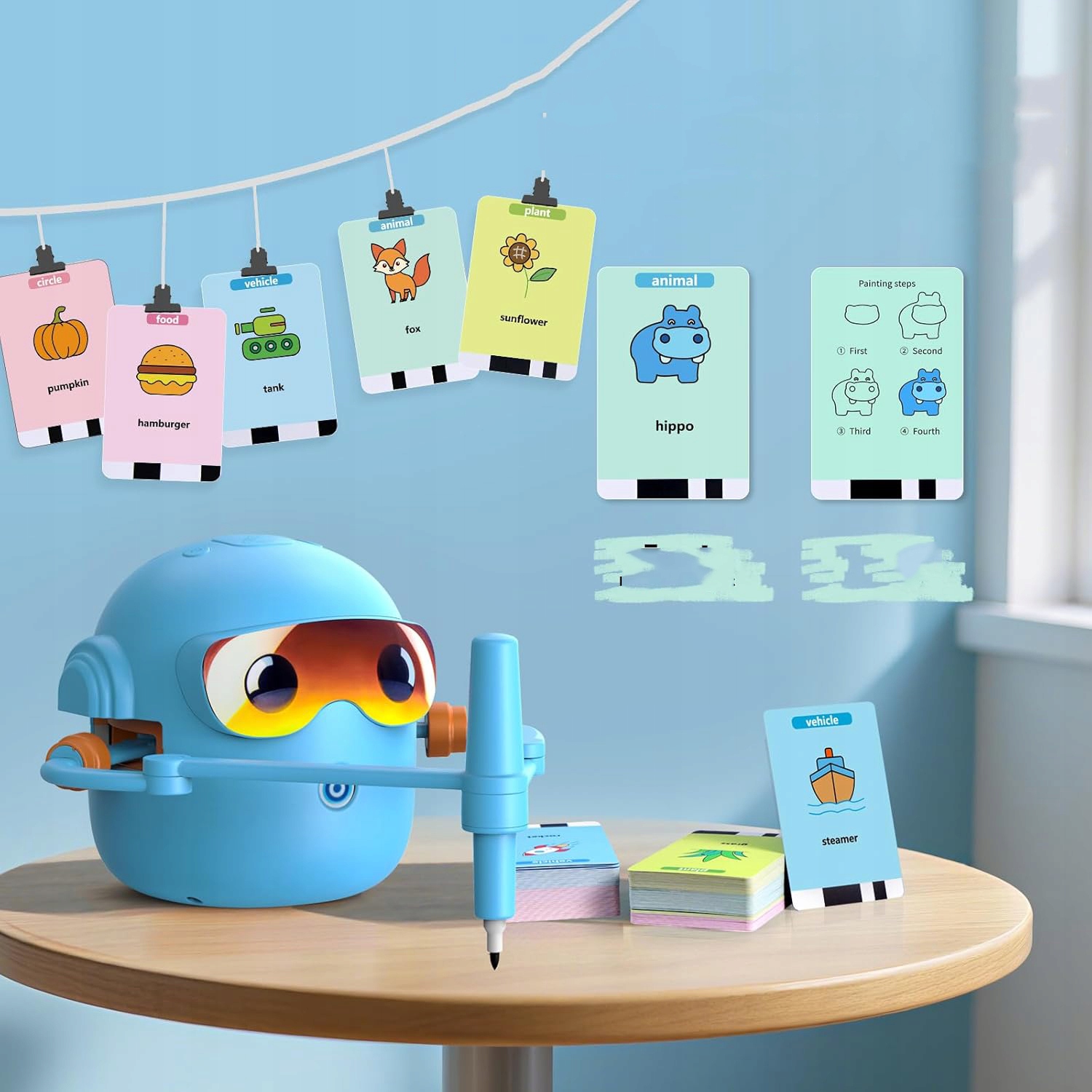 ИНТЕРАКТИВНЫЙ РОБОТ ДЛЯ РИСОВАНИЯ ДЛЯ ДЕТЕЙ - РАЗВИВАЮЩИЙ НАБОР 100 КАРТ + МАРКЕРЫ