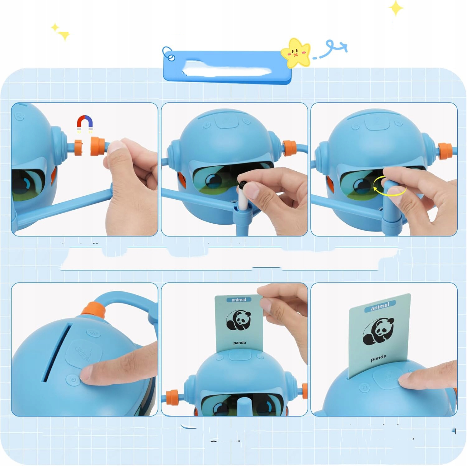 • ⏩ Карты для творческого рисования: Детский робот для рисования оснащен 100 творческими карточками для рисования, которые содержат различные узоры, такие как маленькие животные, растения и транспортные средства, предоставляя детям богатые и интересные темы для рисования. Когда вы вставите карту для рисования в детского робота для рисования, название рисунка будет прочитано вслух, чтобы дети могли учиться во время игры.