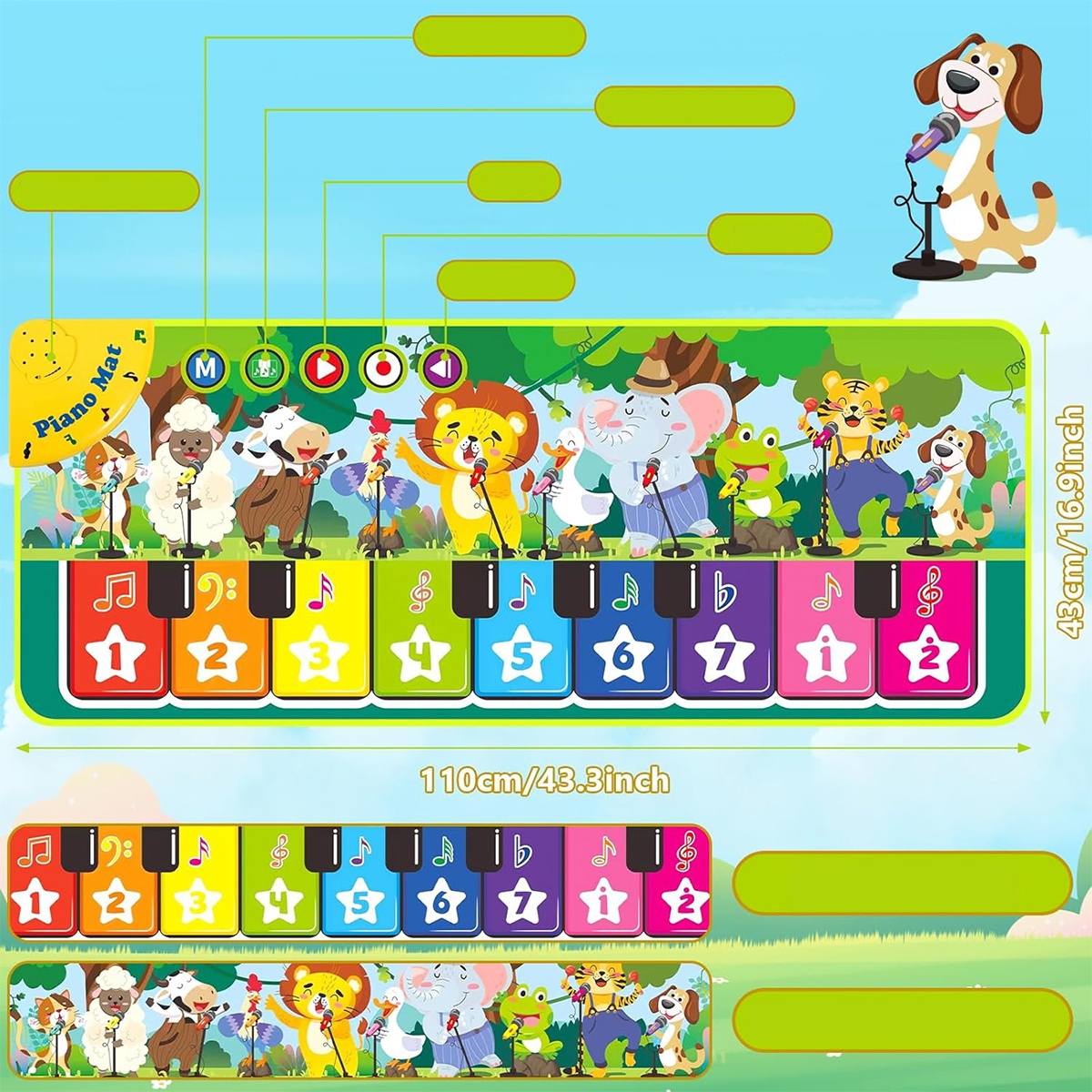 Игрушки YOUKUKE для годовалых детей, музыкальный коврик, игрушки для годовалых детей, подарок для годовалых мальчиков и девочек, рождественские подарки для мальчиков и девочек, школьные подарки, коврик для игры на фортепиано, танцевальные коврики, 110 х 43 см (животное)