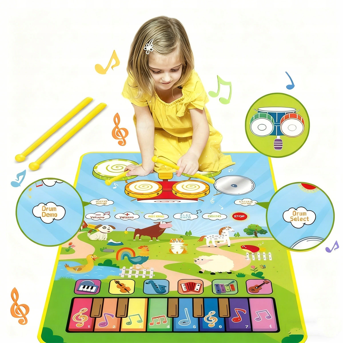 Музыкальный коврик Животные Интерактивное Пианино и Барабаны 3в1