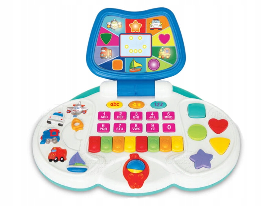 Интерактивный ноутбук, который поможет в обучении цифр, буквах и формах. Когда ребенок нажимает кнопки различных форм и цветов, он увидит соответствующее изображение на экране. Каждый ключ запускает одну из 8 веселых мелодий. Перемещая стрелу, вы услышите звуки, издаваемые 5 различными транспортными средствами.