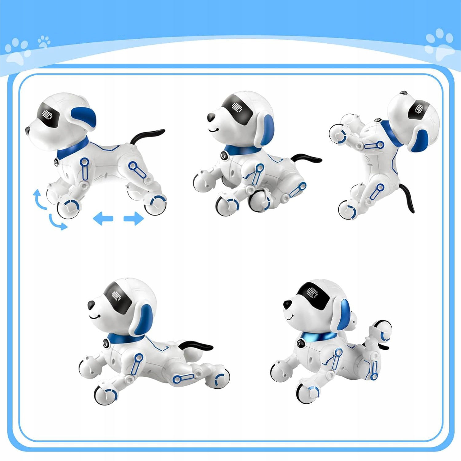- При прикосновении подбородок робота-собаки, он будет выполнять различные милые движения и звуки.