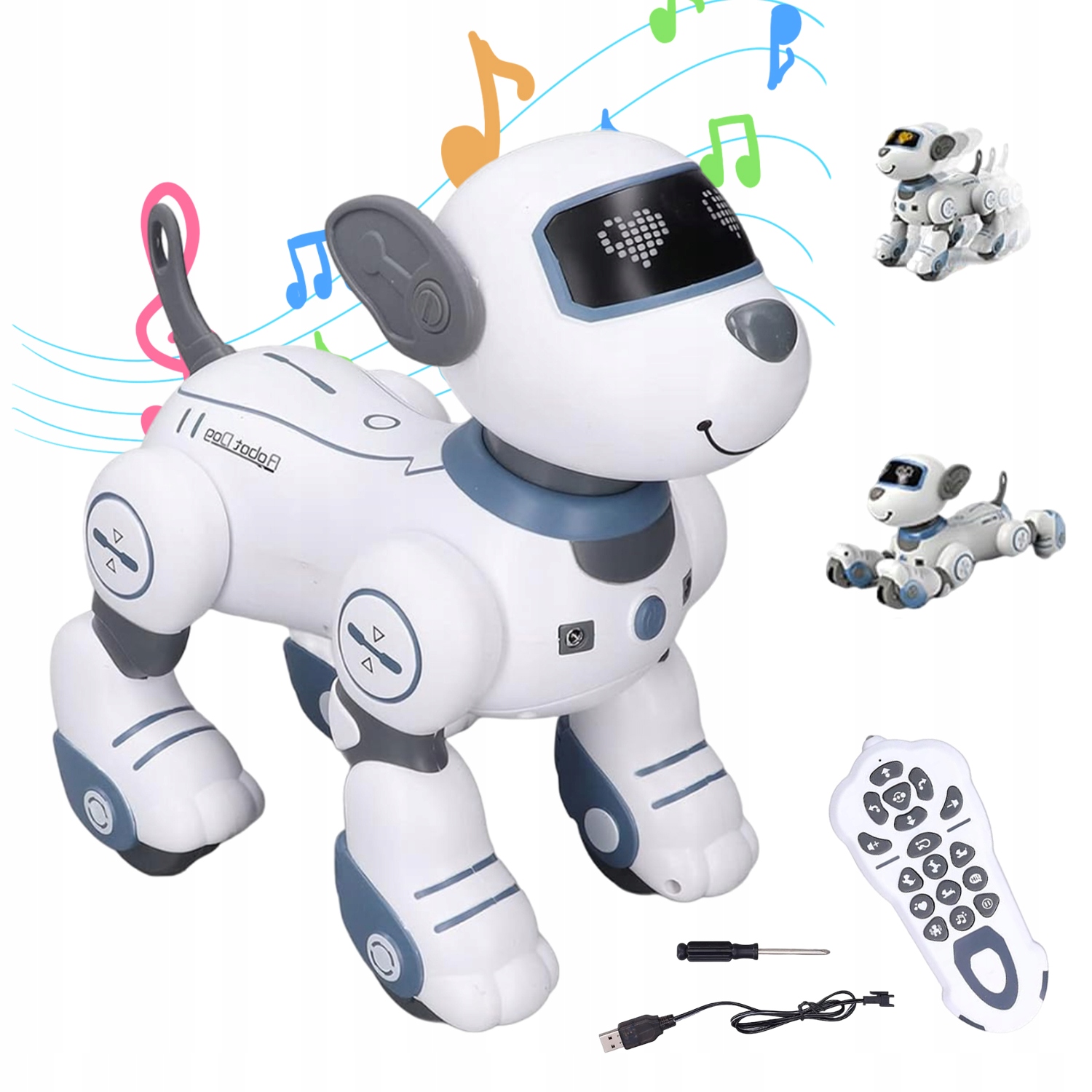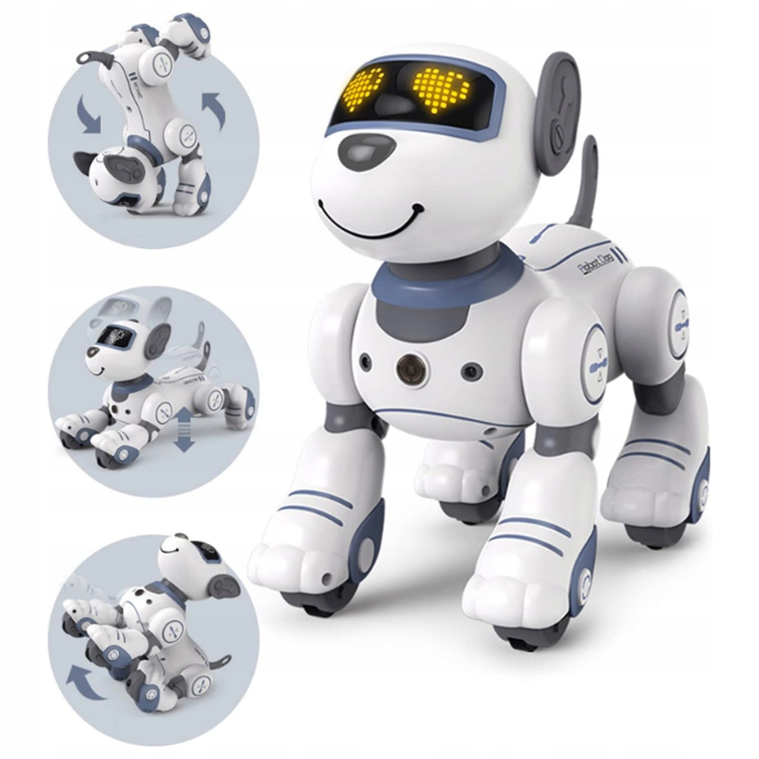 - 👾Когда дети касаются подбородка игрушечной собаки-робота, срабатывают случайные действия и звуки.