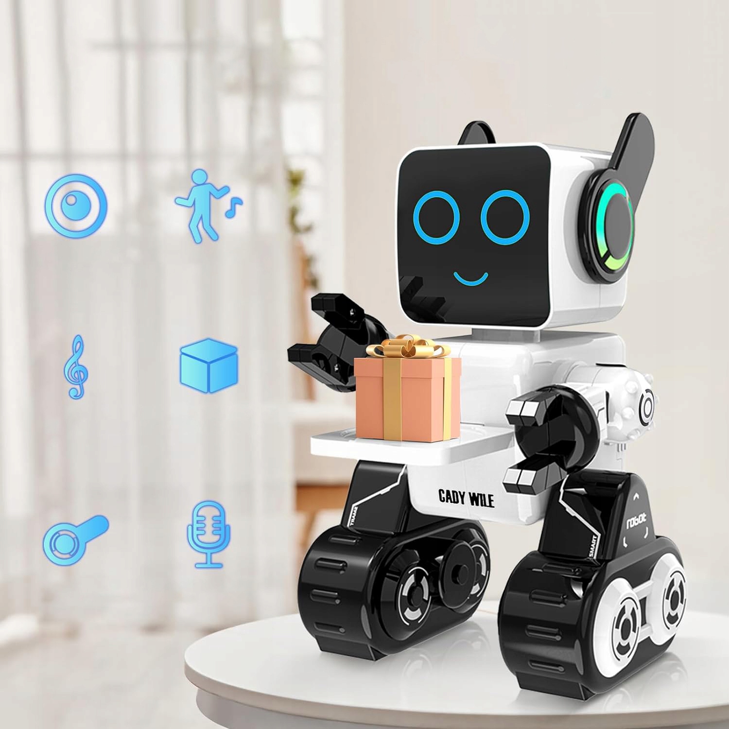☑ Петь, танцевать и помочь: Готовьтесь к танцам и ритму благодаря нашим удаленным роботам! Он содержит запрограммированные музыкальные танцевальные песни, которые сделают ваш день более приятным и сделают ваших друзей взволнованы. Но это еще не все, у этого маленького парня также есть привязанный поднос, который превращает его в вашего личного помощника-робота! Он может предоставить напитки, закуски и другие мелкие предметы, добавляя дополнительный комфорт и веселье в вашу повседневную жизнь! Теперь у вас есть собственный личный помощник по работе