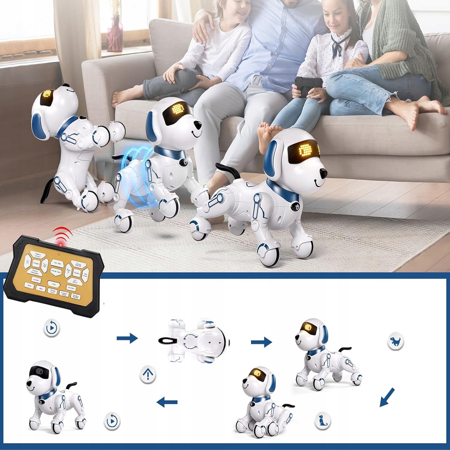 🐶Используйте кнопку программирования на пульте дистанционного управления. Нажимайте кнопки нужных действий, и собака-робот будет выполнять их в определенном порядке, поощряя творческие способности и логическое мышление.