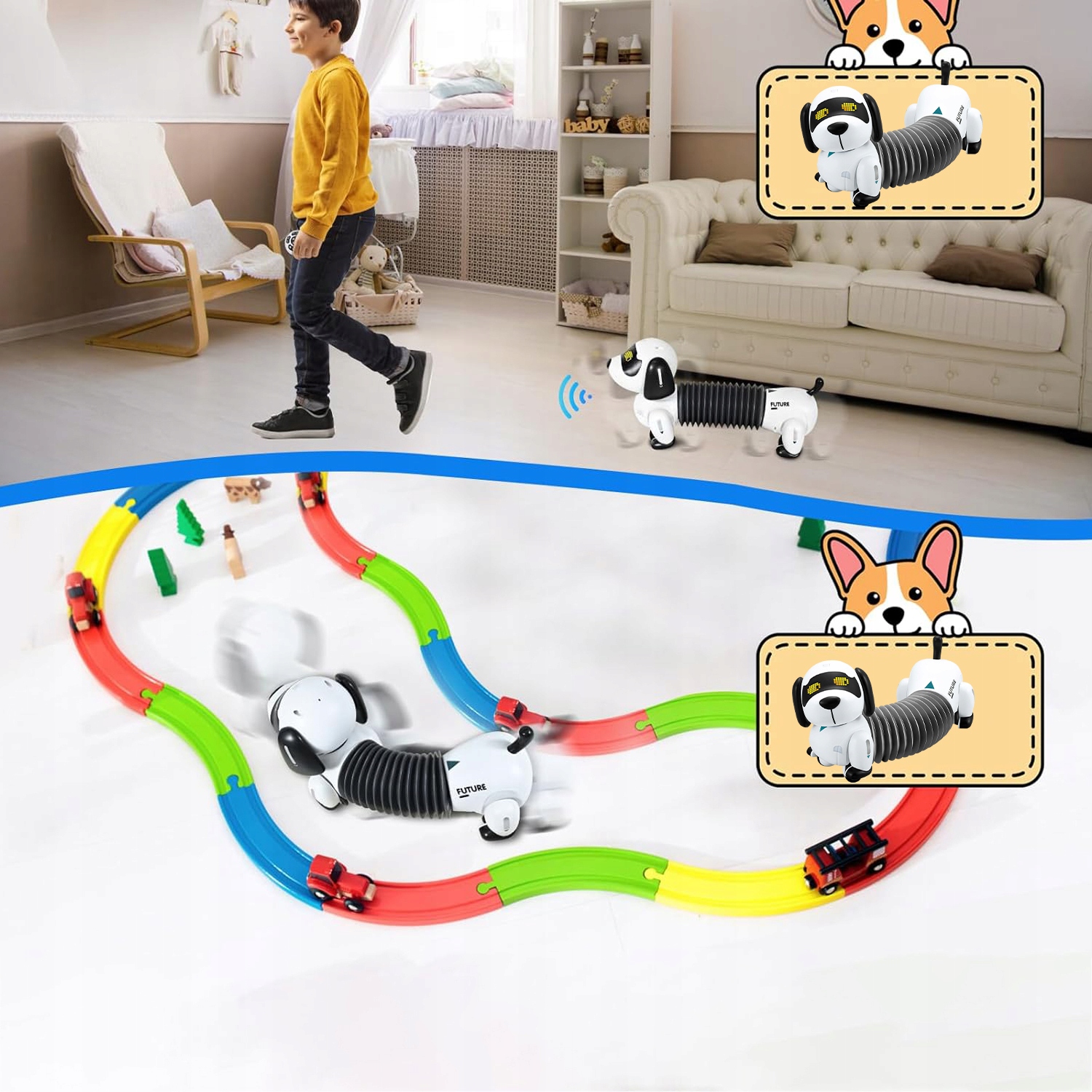 - 🐾 Функция программирования: Вы можете запрограммировать более 50 действий по своему усмотрению с помощью настроек пульта дистанционного управления, тогда игрушка-щенок на радиоуправлении повторит то, что вы запрограммировали.