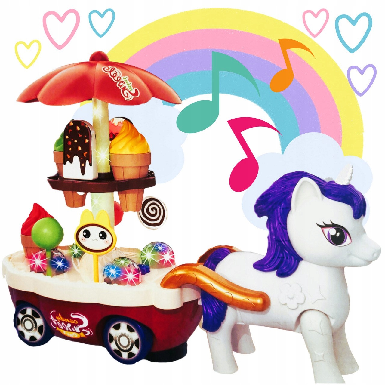Прекрасная интерактивная игрушка для самых маленьких в виде играющей, светящейся и управляющей кафе-мороженого с пони-единорогом, которая доставит массу положительных эмоций самым маленьким детям.