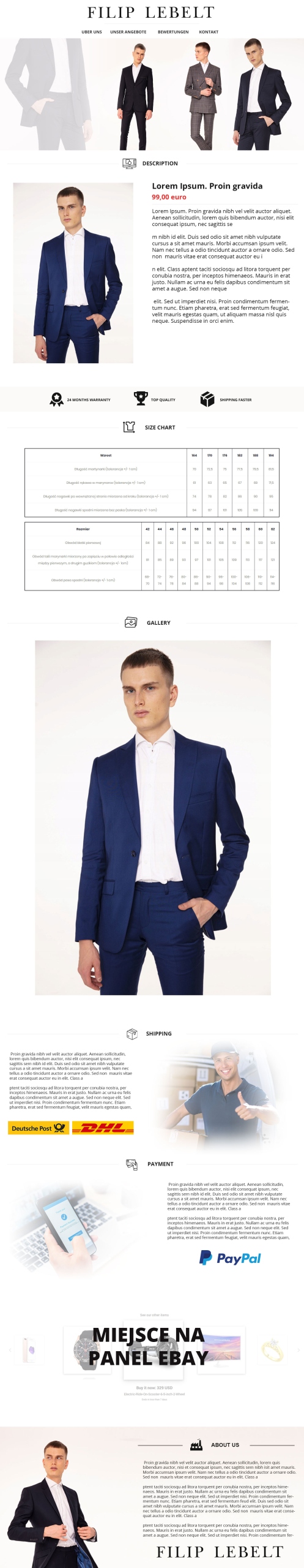 Следовательно, профессиональный и эффективный шаблон eBay стоит от 300 до 600 евро, что преобразуется в 1300-2500 PLN. Тем не менее, вы можете иметь все это с нами по гораздо более низкой цене, не отказываясь от отличного качества и эффективности.