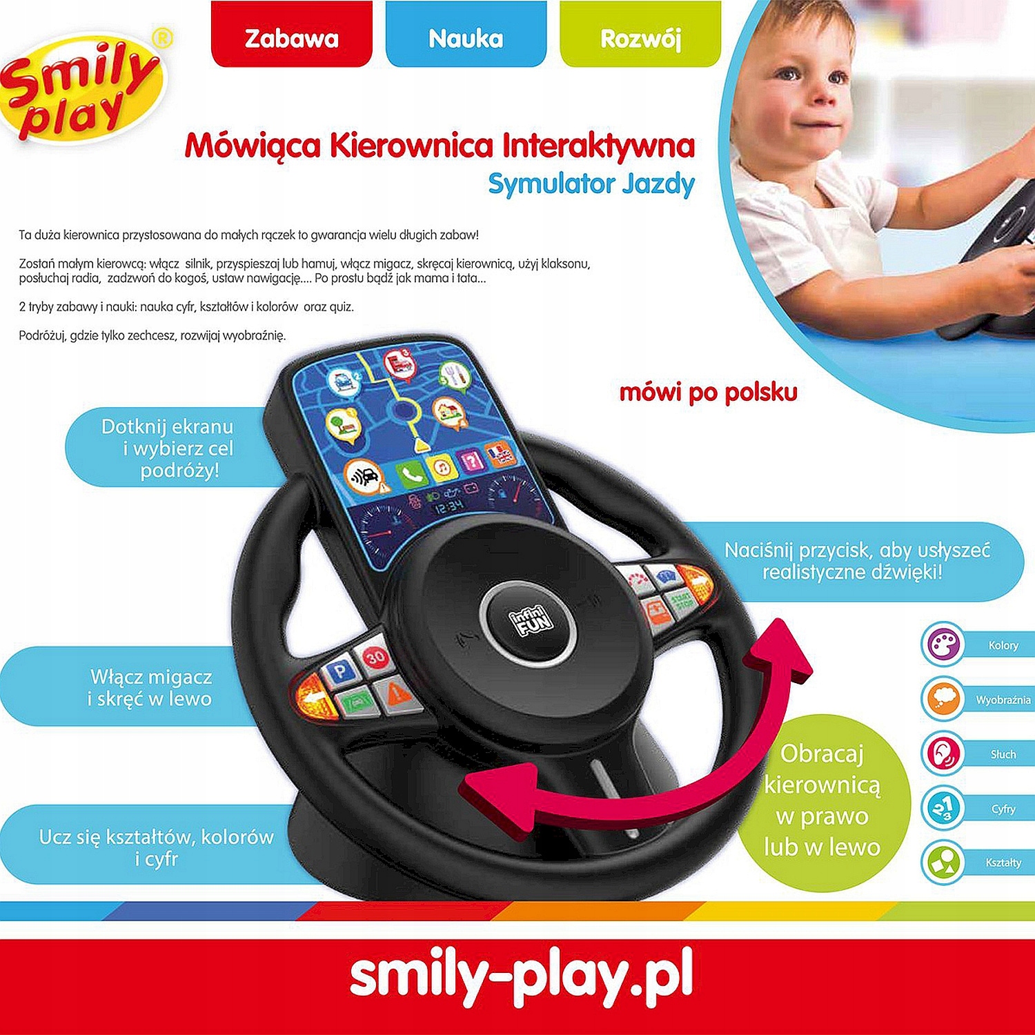 ИНТЕРАКТИВНЫЙ РУЛЕВОЕ КОЛЕСО ГОВОРИТ ПО ПОЛСКИ SMILY PLAY СИМУЛЯТОР ВОждения