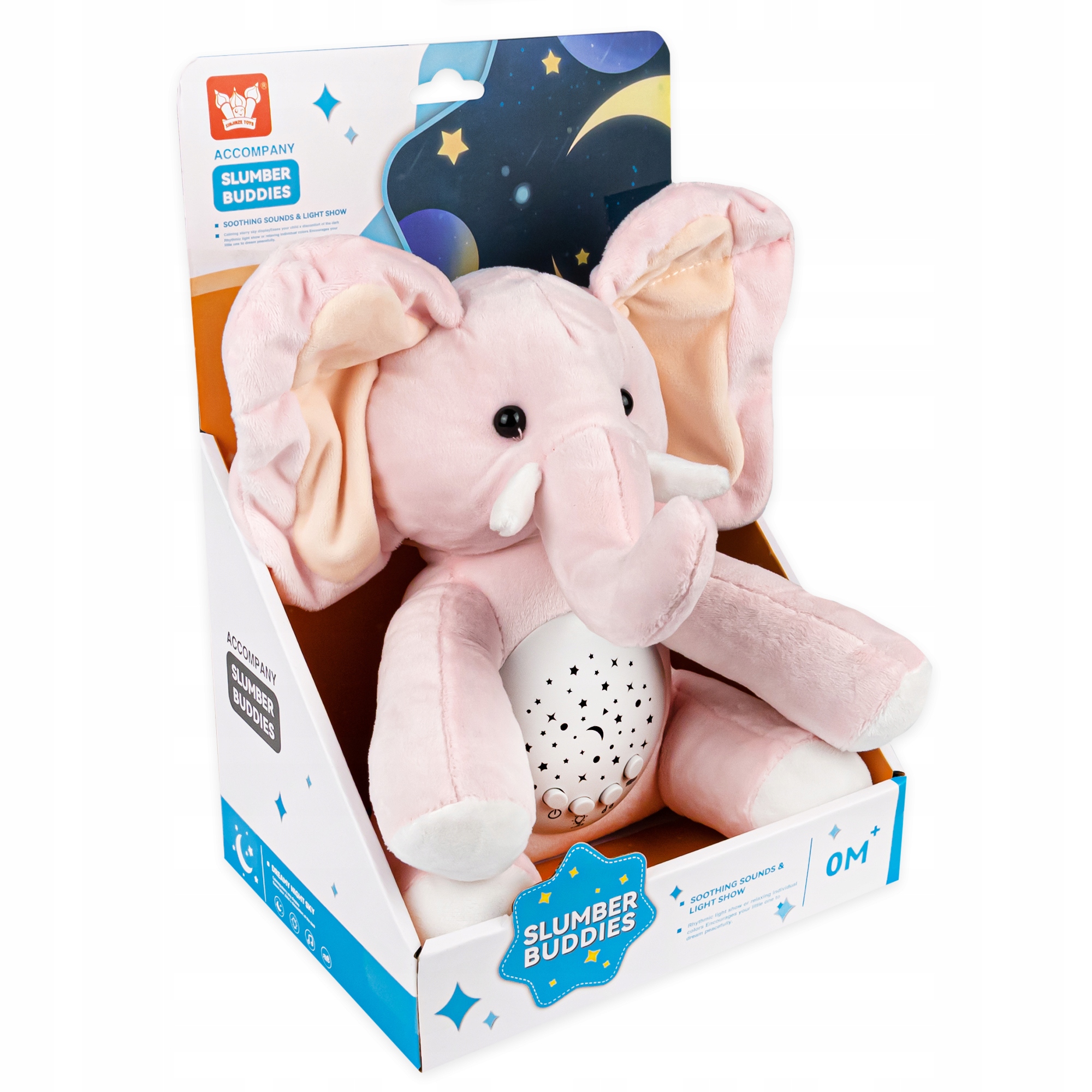 ➡️У слона на брюхе есть панель с кнопками. Мы можем выбрать такие функции, как музыка, звуки природы и красочный проектор.