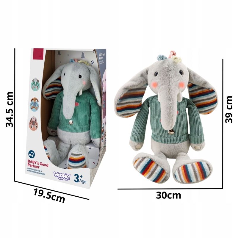 Интерактивный плюшевый слоненок от бренда WOOPIEBABY успокоит и усыпит вашего ребенка. Это одновременно очаровательный компаньон, мягкий и уютный, и идеальный компаньон для игр и развлечений.