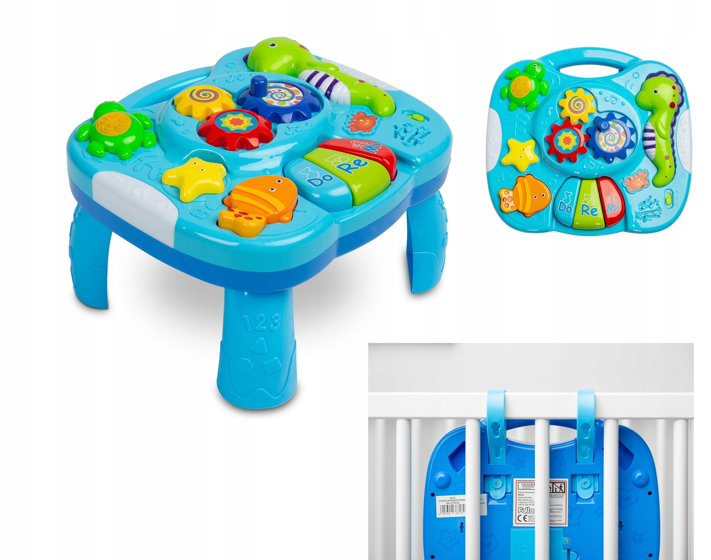Falla, интерактивный стол Toyz, который доставит массу удовольствия малышам. Столешница оснащена мини-пианино с клавишами ДО РЕ МИ, 3 кнопками (каждая из них работает по-разному), включающими разные мелодии, и ручкой с шестеренками.