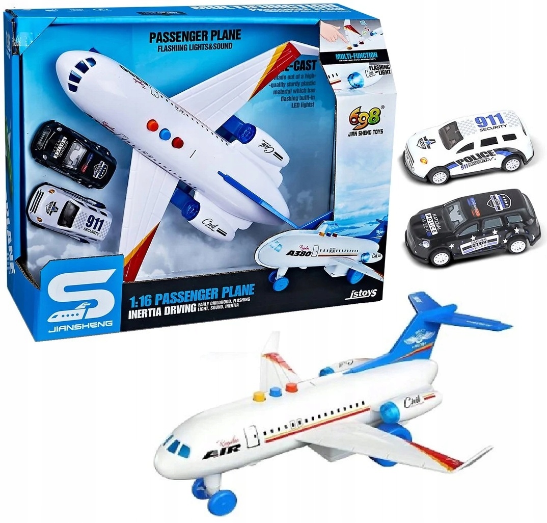 БОЛЬШОЙ ПАССАЖИРСКИЙ САМОЛЕТ ИНТЕРАКТИВНЫЙ СВЕТОВОЙ ЗВУКОВОЙ НАБОР С ПОЛИЦЕЙСКИМ АВТОМОБИЛЕМ