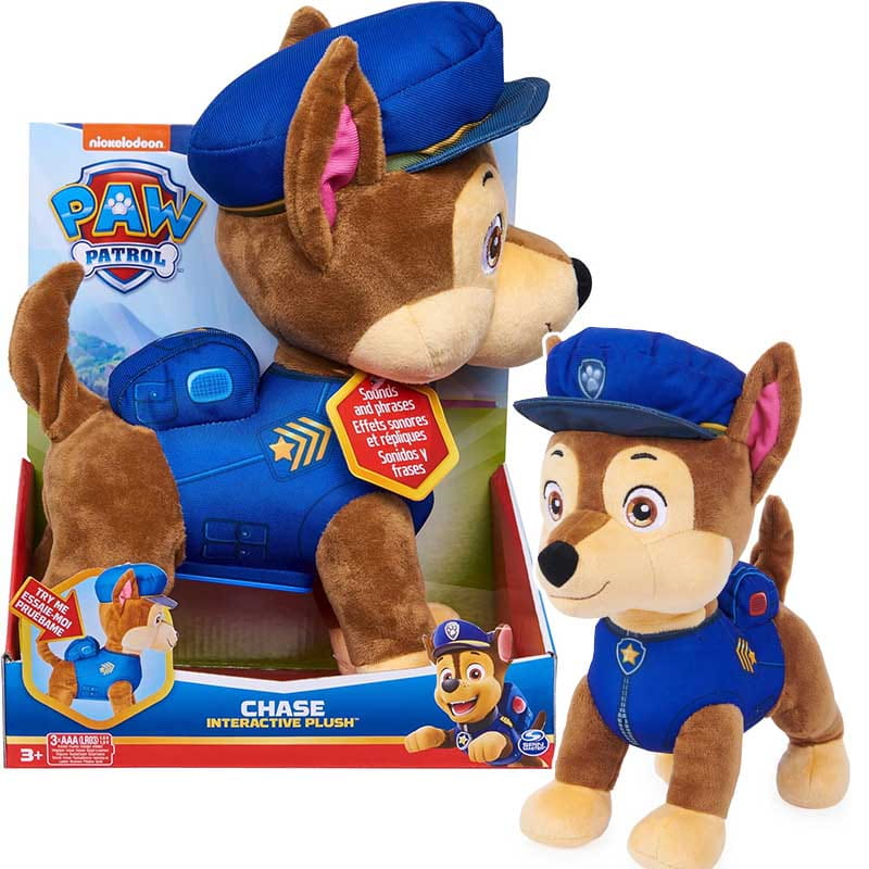 Возьмите домой своего любимого щенка PAW Patrol с настоящим говорящим (английская версия) интерактивным плюшевым Чейзом! Ростом около 30 см, с очень мягким мехом и милой, выразительной мордашкой, Чейз оживает благодаря сочетанию более 20 звуков, английских фраз, музыки и виляющего хвоста, поэтому он всегда готов присоединиться к вашим приключениям (тестовые батарейки входят в комплект). ! Эта мягкая игрушка — идеальный компаньон для приключений, игр и мечтаний о вздремнуть! Когда придет время увлекательной спасательной миссии, просто нажмите на его рюкзак, чтобы активировать его многочисленные функции.