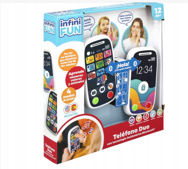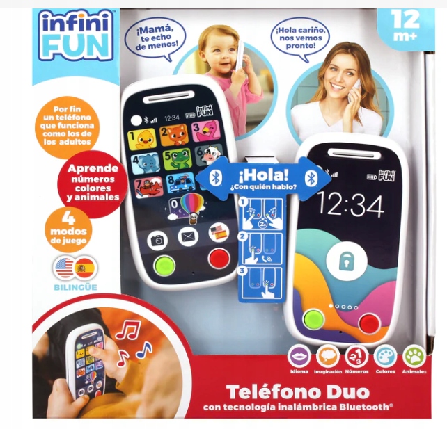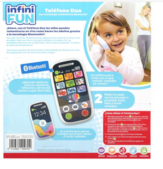 infiniFUN Duo Phone — уникальная игрушка, позволяющая ребенку разговаривать с родителем как по реальному телефону. Благодаря технологии Bluetooth оба телефона подключаются друг к другу и работают на расстоянии до 15 метров, создавая чрезвычайно реалистичные и увлекательные ролевые игры.