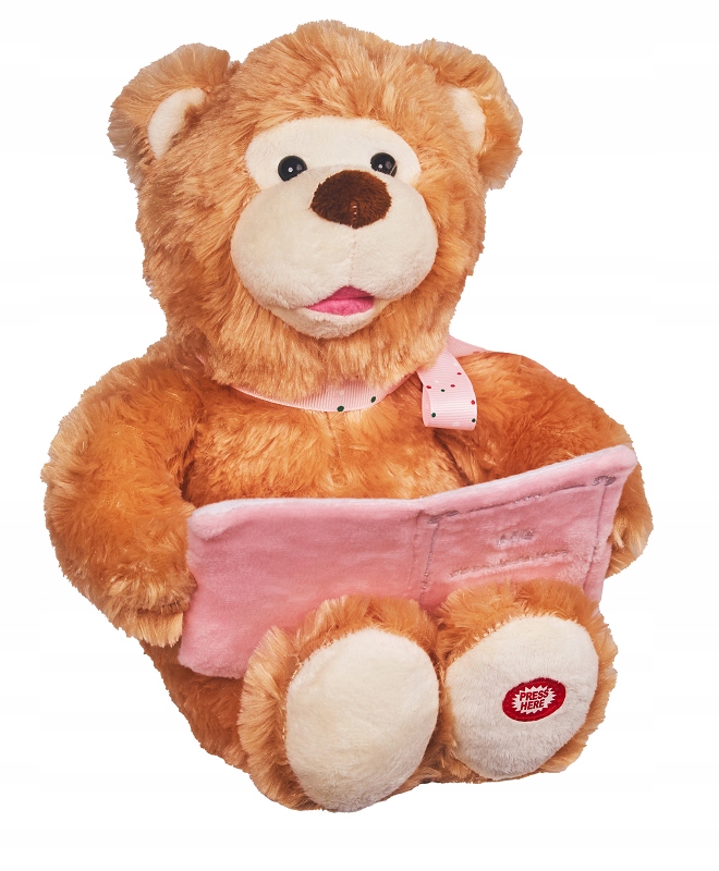 Интерактивный плюшевый мишка рассказывает сказки розового цвета.