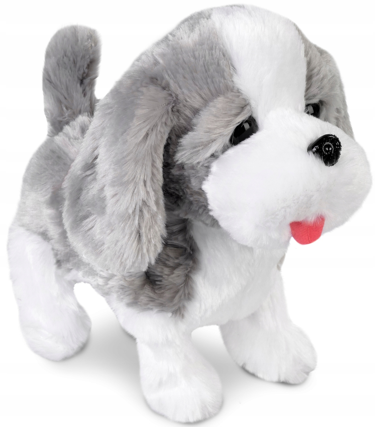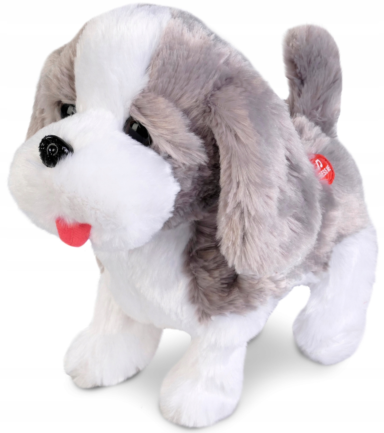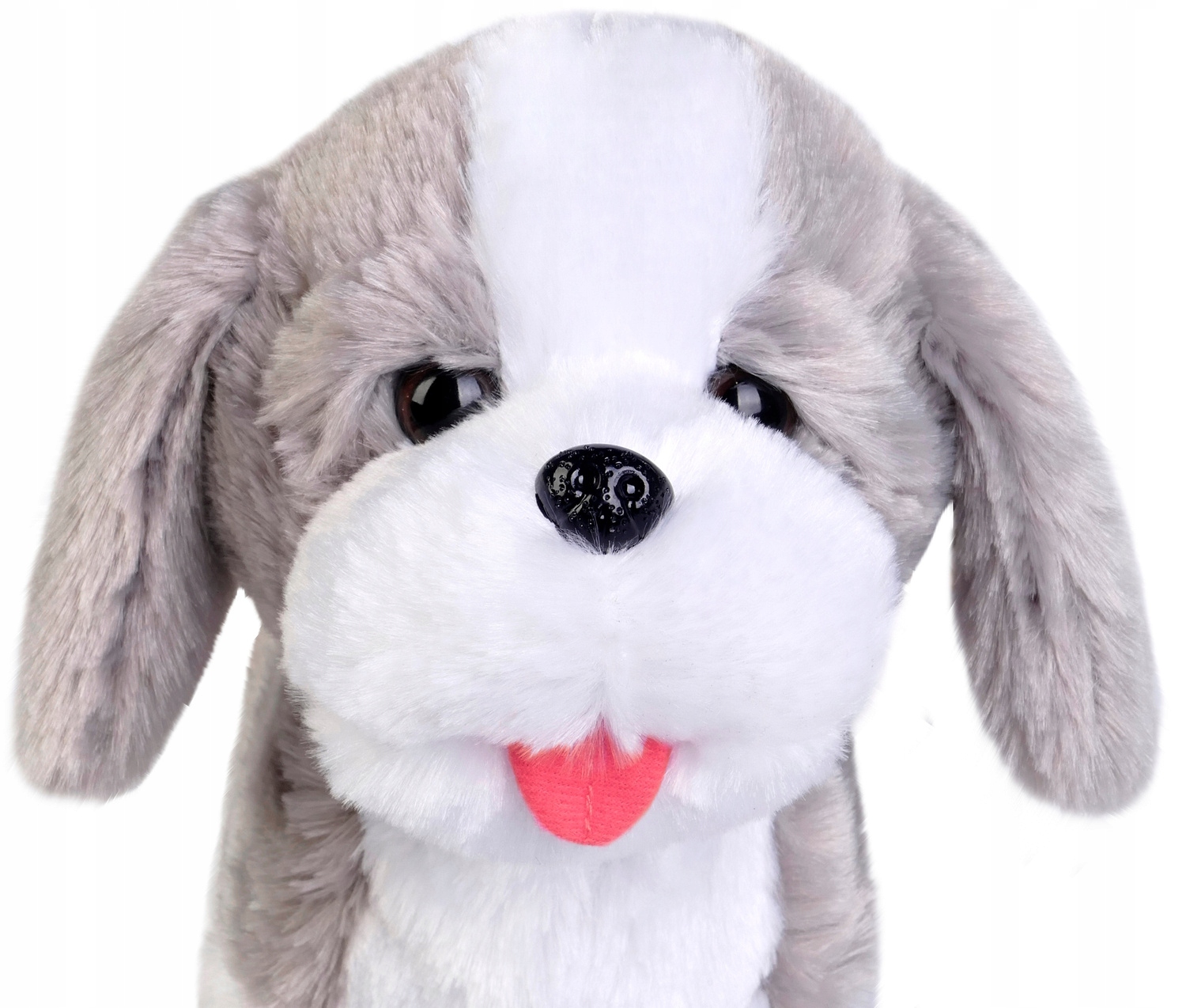 Нажмите кнопку, и ваша собака начнет очаровательно гулять и радостно вилять хвостом. У этого милого животного, нового друга вашего ребенка, милый серо-белый мех, черный глаз и нос со смешной мордашкой.