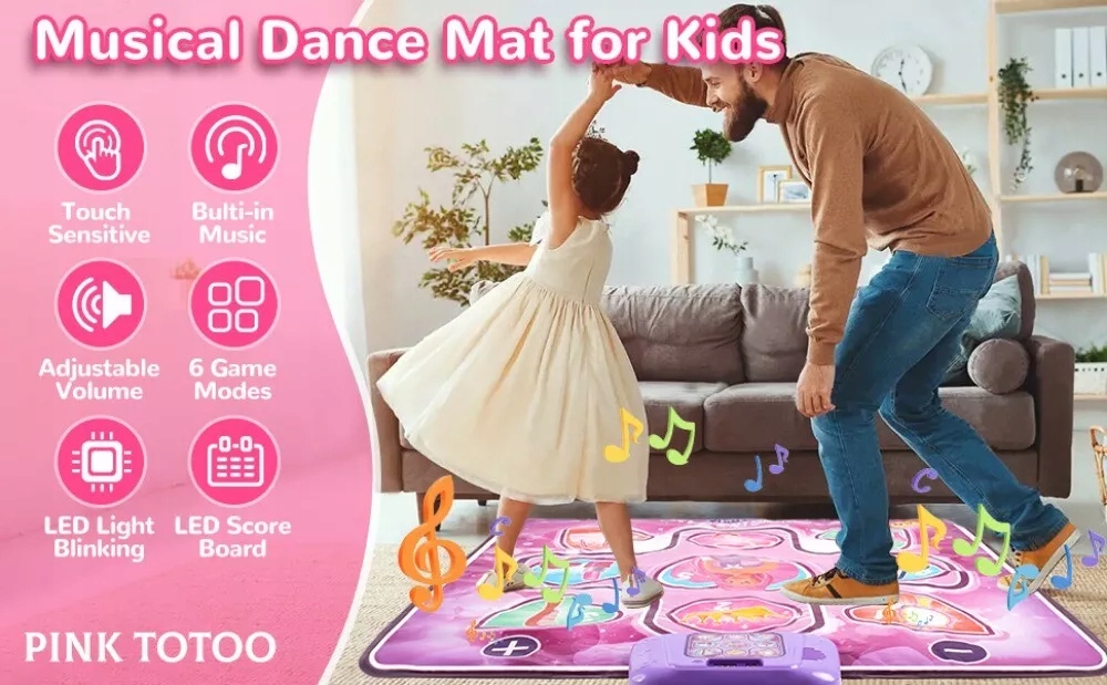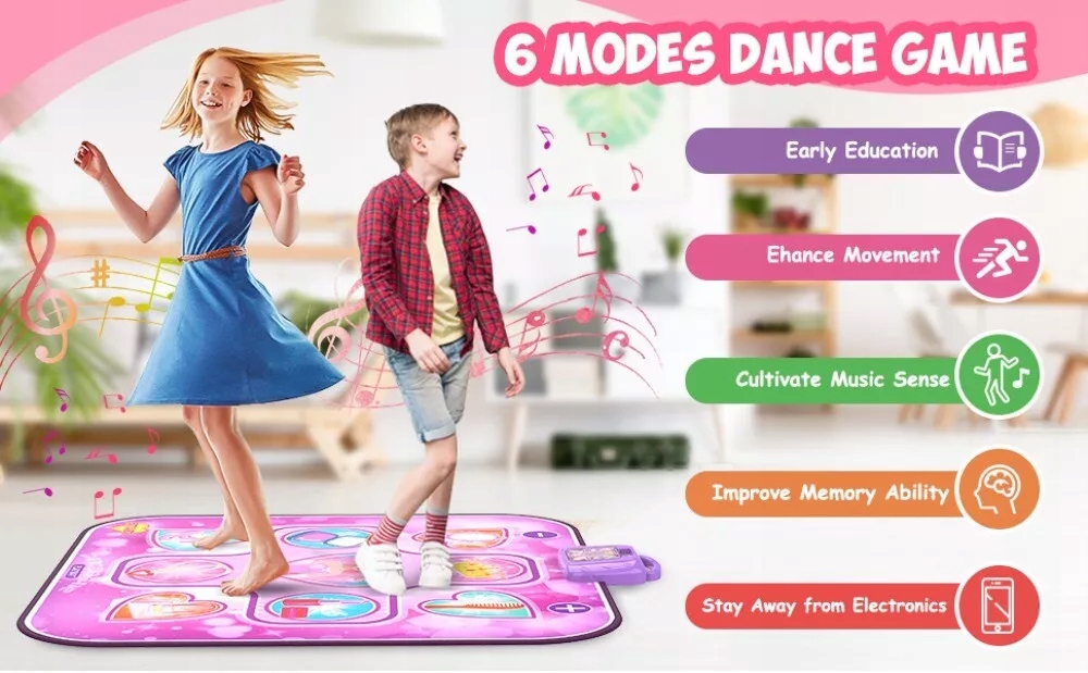 Interaktywna muzyczna mata taneczna LED z 6 trybami gry jako prezent urodzinowy