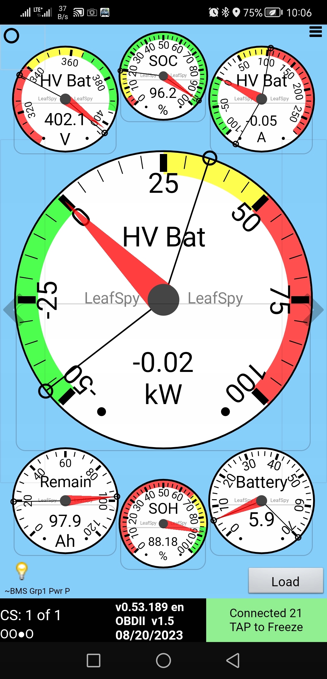 Позволяет считывать напряжение аккумулятора, SOH, SOC, потребление или восстановление тока в кВт, уровень заряда , пробег, ошибки, различные температуры, напряжения, давление в шинах и т. д.