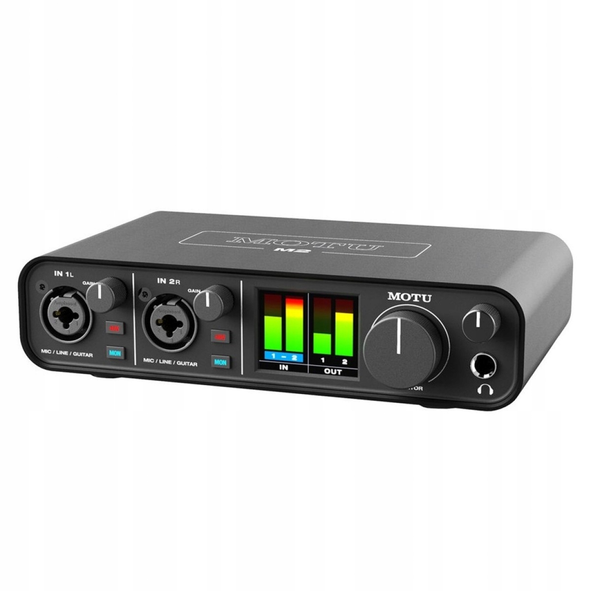 M2 — это новый интерфейс от MOTU, лидера рынка профессиональных аудиоинтерфейсов. M2 оснащен ЦАП ESS Sabre32 Ultra™, которые можно найти в аудиоинтерфейсах стоимостью тысячи долларов и которые обеспечивают удивительный динамический диапазон 120 дБ на своих основных выходах. ESS также имеет выход для наушников, который может конкурировать с лучшими специализированными усилителями для наушников, стоящими сотни долларов. Ультрачистая схема предусилителя обеспечивает измеренное EIN -129 дБн на микрофонных входах. MOTU M2 имеет специально написанные драйверы с задержкой 2,5 мс (при частоте 96 кГц с буфером на 32 сэмпла). Интерфейс оснащен точными ЖК-метрами, позволяющими предоставлять точные данные как для входов, так и для выходов интерфейса.