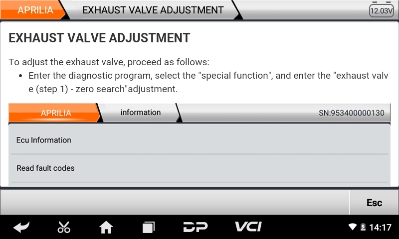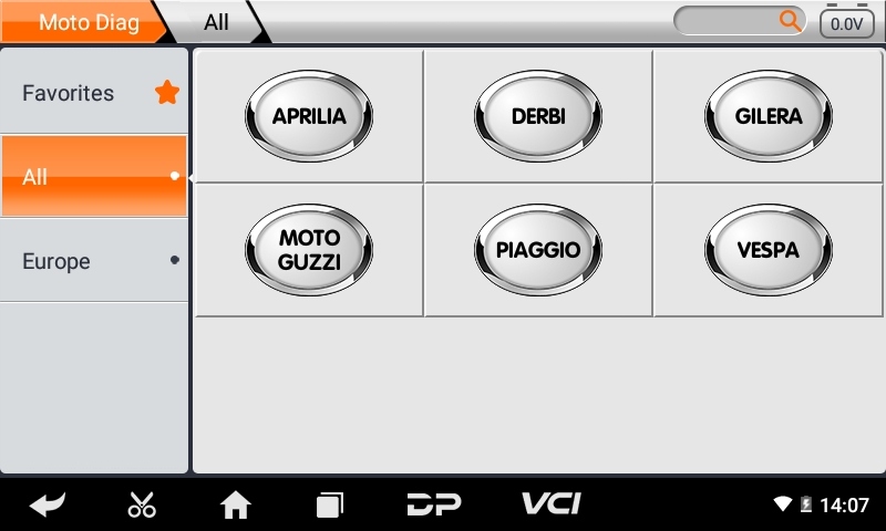 Пример скриншотов интерфейса OBDSTAR ISCAN PIAGGIO GROUP: