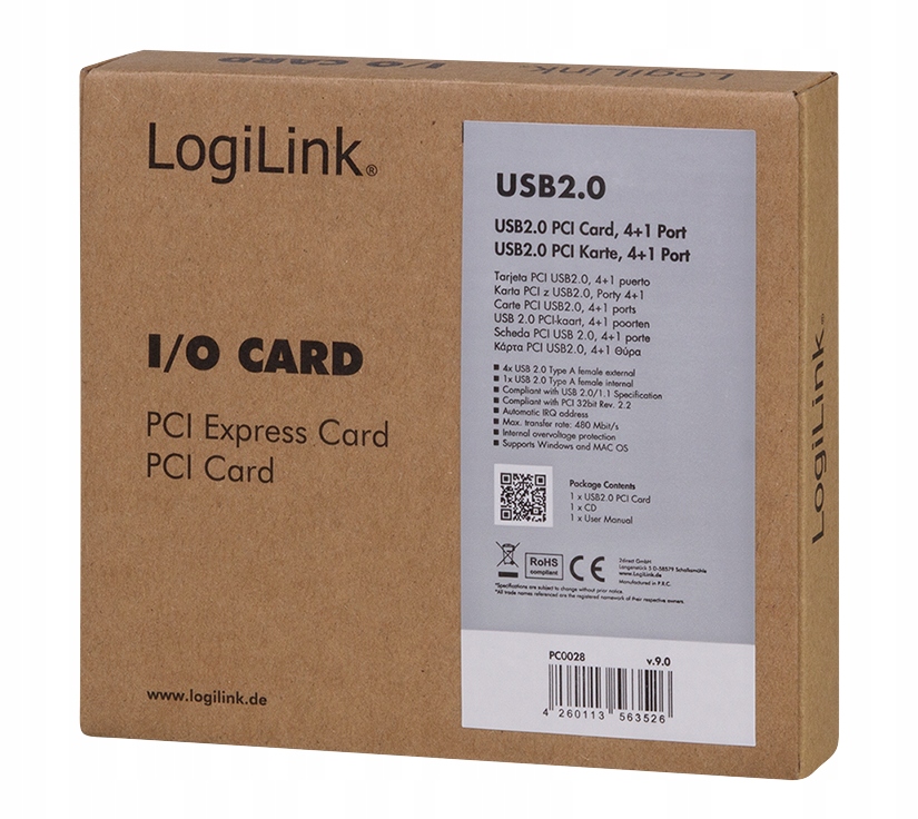 Интерфейсная карта PCI USB 2.0 — 4+1 слот, скорость 480 Мбит/с, LogiLink