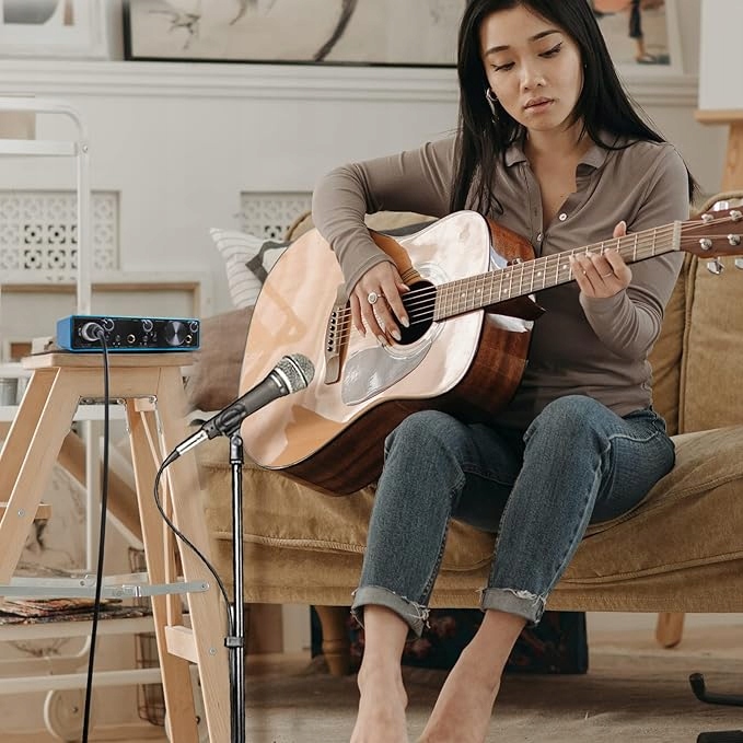 ➡️2 входа, 2 выхода: имеет два ярко освещенных инструментальных входа и два выхода, что позволяет подключать множество устройств одновременно. Аудиоинтерфейс USB-C с микрофонным предусилителем DYNA класса A делает записи вокала более яркими и открытыми.