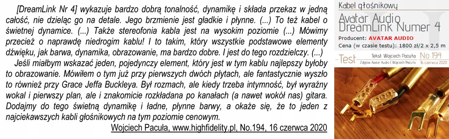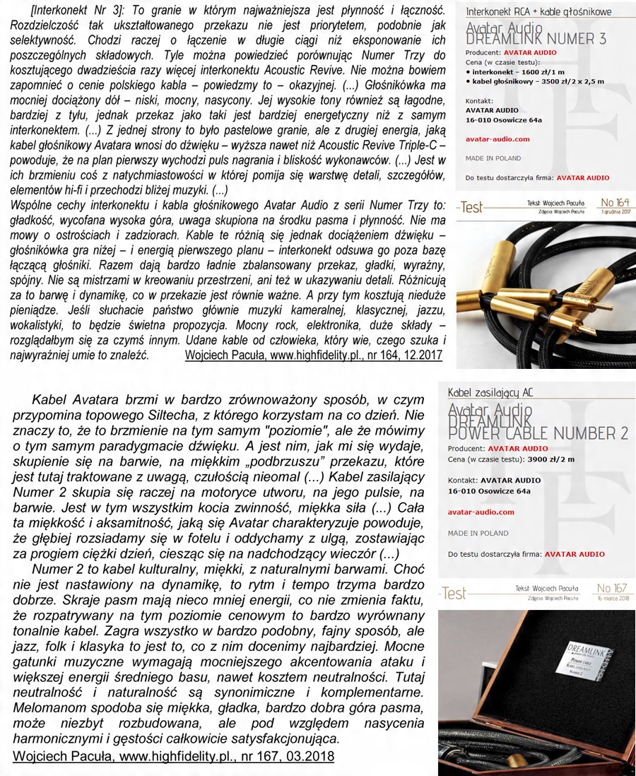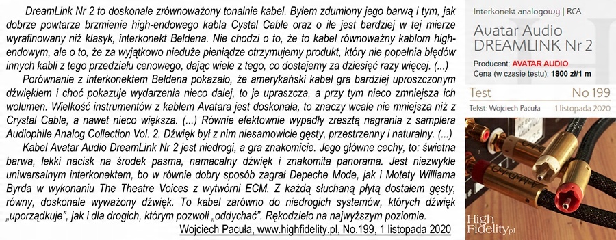 Interkonekt Avatar Audio DREAMLINK Numer Cztery