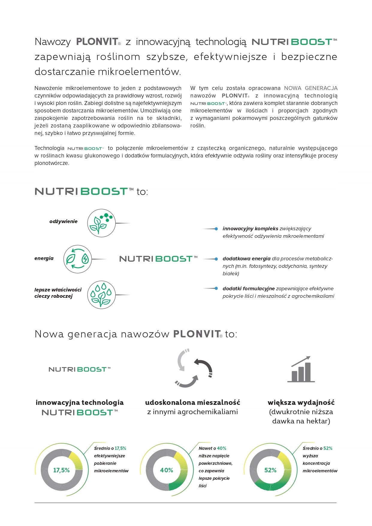 Удобрение содержит технологию Nutriboost и набор микроэлементов, необходимых для картофеля в пропорциях, которые соответствуют их требованиям к продуктам питания.